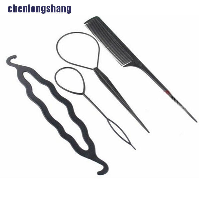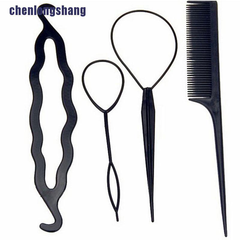 【CLS】4pc Set Hair Styling Clip Bun Maker+Topsy Tail Braid Ponytail Maker StyliMaterial: PLASTIC Colour: Black Qty: 4pcs /Set