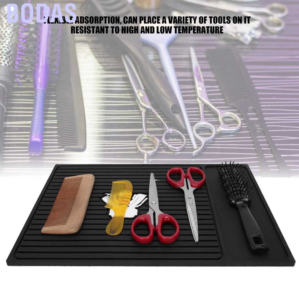 _______♤Welcome Bodas Store♤___________ ✔Ready Stock!!Buy Now! ✔ ✔Quality Checked ✔Best price ★Surprises for you★ ☛Free Gifts:Follow Shop ✉Sent me Screenshot and Message on your order : "Free Gift",if not will Miss ✌(Tip:We will be based on your guests in your country to send the corresponding adapter plug) ➷Wholesale retailers are welcome to negotiate long-term business with us! __________________❀Product Information❀__________________ Feature: -Flexible adsorption, can place a variety of tools on it, tightly attached to the table does not move. -Resistant to high and low temperature, without melting in high temperature, hard to crack in cold, and keep soft. -Convenient storage, multiple compartments, neat tool placement, easy to use. -Made of quality silicone gel material, eco‐friendly and highly anti‐slip. -Suitable for professional hair salon and barber shop to use. Wonderful accessory. Specification: Condition: 100% Brand NewItem Type: Hairdresser Tools Pad Material: Silicone Size: Approx. 35 x 24.5cm / 13.8 x 9.6in Usage: Suitable for professional barbershops or salons Package List: 1 x Anti‐Slip Pad