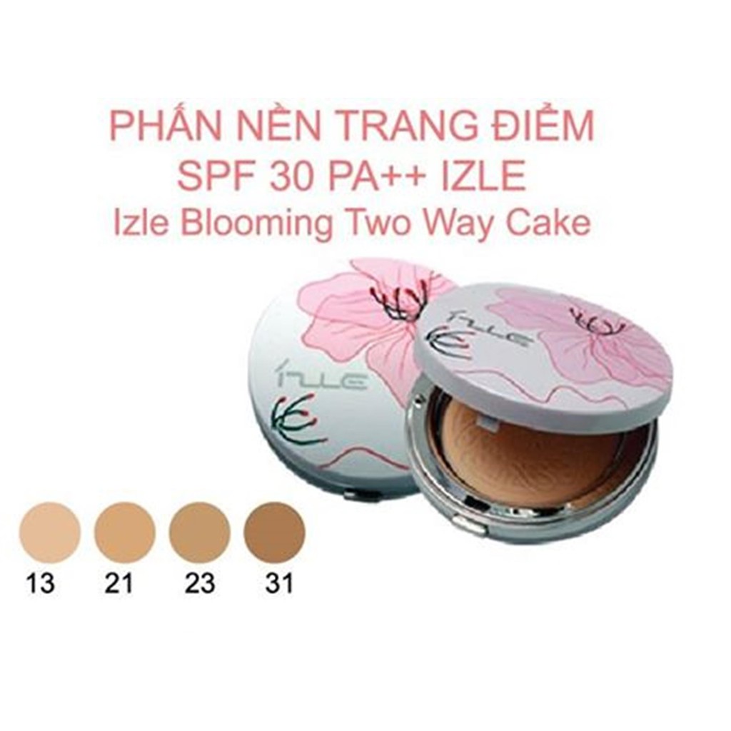 - Xuất xứ : Hàn Quốc. - Nhãn hiệu : Izle. - Chỉ số chống nắng : SPF30 PA++ - Phấn nền Izle chính hãng Hàn Quốc với bột phấn siêu mịn cho độ bám bền lâu, ngăn chặn bã nhờn mồ hôi, giúp bề mặt da khô thoáng, bảo vệ lỗ chân lông. - Phấn nền trang điểm tốt, chỉ số chống nắng cao SPF30, da mặt bạn luôn được an toàn dưới tia cực tím, giúp da mặt luôn mịn màng tươi trẻ. - Sử dụng được 2 chức năng khô và ướt. - Nhiều cấp màu tương ứng với tất cả màu da: ✔ 13- Light Beige, 21- Skin Beige, 23- Natural Beige, 31- Chic Beige.