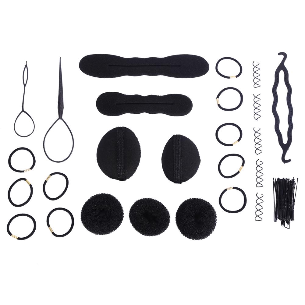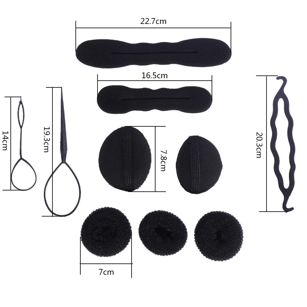 Include different kinds of needles, pads, pins, clips and so on, to satisfy your different needs A necessary tool set for women, great accessories for hair style, can make hair design magically Very good quality, sturdy and durable in using, can hold your hair firmly, easy and convenient to carry and use Description: This is a set of fashion hair maker accessories includes various pull hair pins, French meatball head tools, coiled hairpins, sponge increased pads and so on. The set of hair makers can be used to make multiple hair styling and give you an attractive and new look. What's more, it will make you outstanding and more attractive in some special situations, such as wedding, appointment or party. It is amazing. Don't miss it! Features: -Very good quality, sturdy and durable in using, can hold your hair firmly, easy and convenient to carry and use. -Include different kinds of needles, pads, pins, clips and so on, to satisfy your different needs. -A necessary tool set for women, great accessories for hair style, can make hair design magically. -Help to make DIY hair styles, and make your hair more fashion. -Can be used to make multiple hair styling, especially fit for long hair. Suitable for make hair styling in wedding, appointment or party etc. Specifications: Material: Plastic, Sponge, Metal Main Color: Black Size: As Shown In Pictures Package Weight: 126g Package Included: 2 x Sponge Disk Hair Tools: One Large & One Small 2 x Sponge Increased Pads: One Large & One Small 2 x Pull Hair Pins: One Large & One Small 1 x Double Hook Plate Made Needle 3 x French Meatball Head Tools: Two Large & One Small 5 x Helical Coiled Hairpins 10 x Black Rubber Bands 1 x Set of U-Shaped Clips(about 40 Pcs) Note: Please note, the package only contain the hair styling accessories or tools, the others showed in the picture are just for picture purpose that will not included in the package.