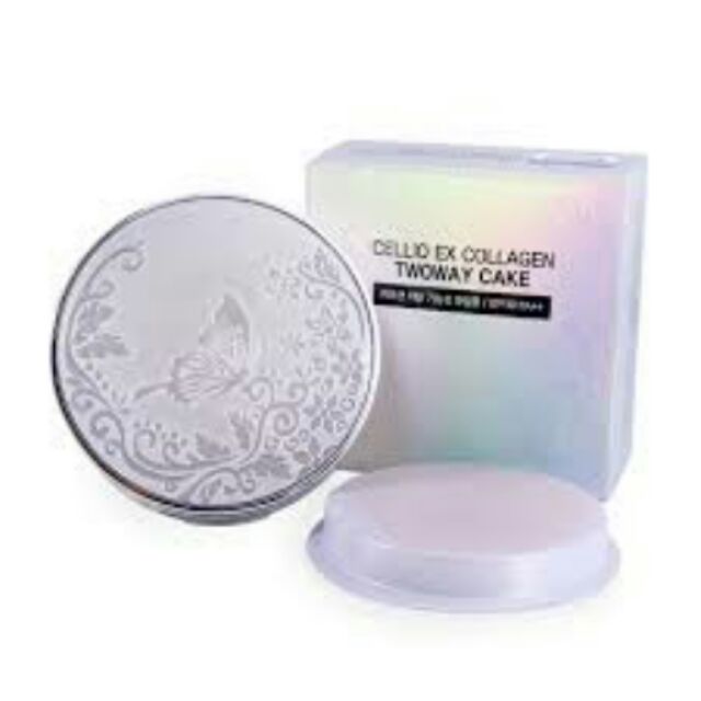 Phấn Phủ Siêu Mịn Cellio Ex Collagen Twoway Cake SPF 30 (Bao gồm 1 hộp phấn + tặng thêm 1 ruột sơ cua ) Xuất xứ: Hàn Quốc Thương hiệu: Cellio Trọng lượng: 30gr Thành phần: - Chứa những hạt collagen có tác dụng tạo nên cấu trúc bền vững cho da. - Dầu argan, nguyên liệu được mệnh danh là dầu trắng của maroc, đây là nguyên liệu từ thảo dược rất tốt cho làn da. Công dụng: - Giúp cho sự phát triển tái tạo da, chống lại hiện tượng lão hóa dó đó chất collagen trong sản phẩm prestige moisture soft pact có chức năng tổng hợp từ những hạt rỗng mịn tăng khả năng đàn hồi và độ láng mượt của làn da, giúp bạn luôn giữ mãi làn da mềm mại mịn màng tràn đầy sức sống. - Trong dầu argan có chứa chất chống oxy hóa và vitamin, như saponin và triterpenoids, có sẵn với số lượng lớn trong dầu argan giúp bảo vệ các mô da cơ thể do tác dụng dưỡng ẩm và chữa bệnh, chống lại sự lão hóa da và cung cấp dưỡng chất cho làn da khô, đồng thời hiệu quả tái sinh tế bào trong da, ngoài ra dầu argan còn chứa những chất chống lại và tiêu diệt hầu hết các loại mụn. - Với lượng bột mềm mịn như nhung, sản phẩm dạng phấn với hiệu quả ngăn ngừa tia tử ngoại và bám dính một cách tự nhiên trên khuôn mặt. Cùng công nghệ sản xuất mới sẽ giúp cho bột được đều mịn trên da, tránh được hiện tượng vón cục khi bạn trang điểm và sản phẩm có khả năng bám dính rất cao giúp bạn thoải mái tự tin với làn da của mình. – Sản phẩm có kết hợp với chất SPF30, PA++ có khả năng chống nắng (SPF 30, PA++), giúp da chống lại các tác động từ bên ngoài. Bảo vệ làn da bạn một cách tối ưu nhất. Sản phẩm phù hợp với mọi làn da, không gây kích ứng da. Có hai màu cho bạn lựa chọn: #13: Màu trắng sáng. #21: Màu trắng tự nhiên. Đây chắc chắn là dòng Phấn phủ tối ưu nhất vì độ che phủ tốt, cực mềm mịn, màu đều, tự nhiên, không gây cảm giác nặng nề trên da. Hướng dẫn sử dụng: – Dùng bông phấn thoa nhẹ nhàng trên toàn khuôn mặt trước rồi thoa vào vùng chữ T, tránh miết bông phấn để tạo độ mịn và bám phấn hơn. – Dùng sau lớp dưỡng da và kem lót nền. #phan #phấn #phanmat #phannuoc #phannen