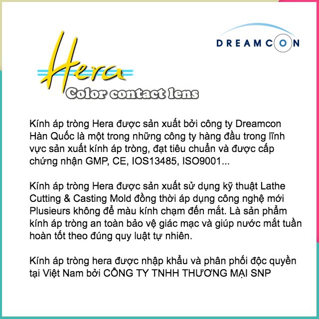 Kính Áp Tròng HERA AMPA Choco - Lens choco Là loại kính áp tròng mềm, dùng 6 THÁNG - Vân mầu choco như ảnh - Đường kính: 14.0mm | B.C: 8.6 | Độ ẩm: 42% - Lens cận: Không độ Lưu ý đặt mua * Đơn giá là giá 1CẶP lens, đi kèm là bộ hộp khay ngâm lens cùng nhíp gắp và que đeo lens ----- Hướng dẫn sử dụng: Xem hướng dẫn trên web của Hera hoặc xem video hướng dẫn trên youtube Lưu ý sử dụng kính áp tròng HERA - Không đeo lens đi ngủ, đi bơi - Không đeo lens nếu mắc bệnh tiểu đường hoặc các bệnh về mắt - Đeo lens trước khi trang điểm và tháo lens trước khi tẩy trang - Không để lens tiếp xúc với bất kỳ loại nước nào khác ngoài dung dịch ngâm lens - Không dùng nước nhỏ mắt thông thường để nhỏ mắt khi đang đeo lens - Màu lens khi đeo lên mắt có thể chênh lệch so với hình mẫu tùy thuộc mầu đồng tử: đen hay nâu sẫm hay nâu sáng. ----- Chính sách bảo hành kính áp tròng HERA Khách hàng có trách nhiệm kiểm tra lens trước khi khui nắp. Shop không bảo hành trong các trường hợp lens bị rách, hư hỏng do tác nhân bên ngoài sau khi khách hàng đã mở nắp. Trong trường hợp khách phát hiện lens bị lỗi do sản xuất, shop sẽ kiểm tra, thu hồi lens lỗi và đổi sản phẩm mới CÙNG MẪU MÃ #heralens #kinhaptrong #kinhaptrongcan #lenscan #kinhaptrong1ngay #lens1ngay #contactlens #lens #nuocngamkinhaptrong #nuocngamlens #nuocnhomatlens #dungcudeolens #migia #tocgia