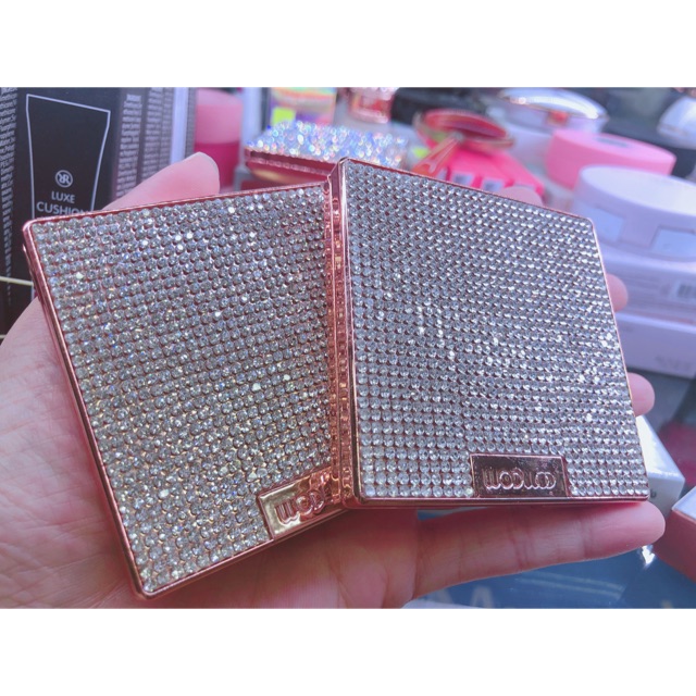 Phần nề có vỏ hộp đính đá sang trọng, cấu trúc phấn che khuyết đồng thời làm sáng và mịn da, phấn thích hợp dùng hàng ngày, có tông màu.