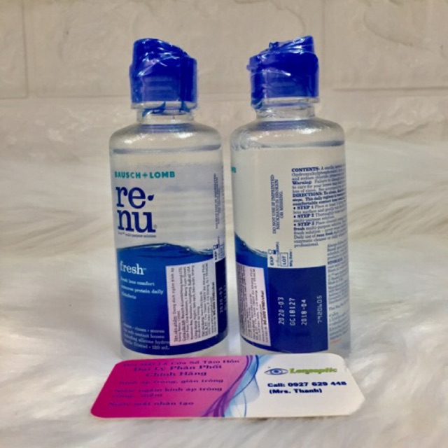 Nước ngâm kính áp tròng mềm - Renu(USA) * Thông tin sản phẩm: - Loại sản phẩm: dung dịch ngâm kính dành cho kính áp tròng mềm - Thể tích: 120 ml - Xuất xứ: USA Dung dịch ngâm và rửa kính áp tròng Renu Fresh là sản phẩm cơ bản cần thiết bất cứ khi nào sử dụng kính áp tròng, có tác dụng chống khô mắt, đảm bảo an toàn và tăng cường sự thoải mái với giải pháp 3 trong 1 diệt 99.9% vi khuẩn và nấm. * Công dụng: kết hợp 4 chức năng trong cùng một loại dung dịch, thuận tiện cho mọi một múc đích sử dụng: Rửa, tráng, ngâm và tẩy rửa kính áp tròng. * Đảm bảo cho kính áp tròng được làm sạch, không bị dơ và mờ đồng thời tăng thời gian sử dụng kính được lâu dài. * Người sử dụng kính áp tròng cần tuân thủ nghiêm nghặt quy trình diệt trùng, rửa và ngâm kính thường xuyên đảm bảo vệ sinh cho kính và mắt, hạn chế nguy cơ nhiễm khuẩn. Đặt hàng từ Lens Optic.net hôm nay và nhận giao hàng nhanh trong ngày. Sản phẩm được chúng tôi nhập hàng trực tiếp từ nhà phân phối, bạn có thể được an toàn trong kiến thức mà bạn sẽ nhận được chiếc kính áp tròng chất lượng. #nuocngamlens #nuocngamkinhaptrong #renu #nuocngamrenu #dungdichngamkinhaptrong