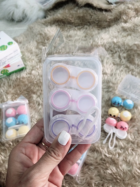 Khay đựng 3 cặp lens cục kì cuttte ,có thể đựng 1 lần 3 cặp lens rất tiện cho việc mang lens đi du lịch và dễ thay đổi kiểu lens Trong khay có đầy đủ phụ kiệnthuaajn tiện cho việc đeo lens và vệ sinh lens