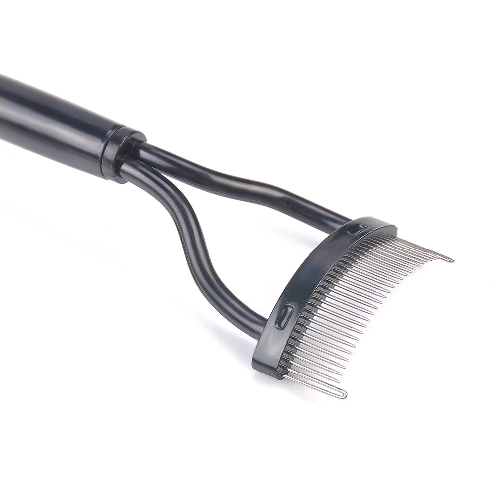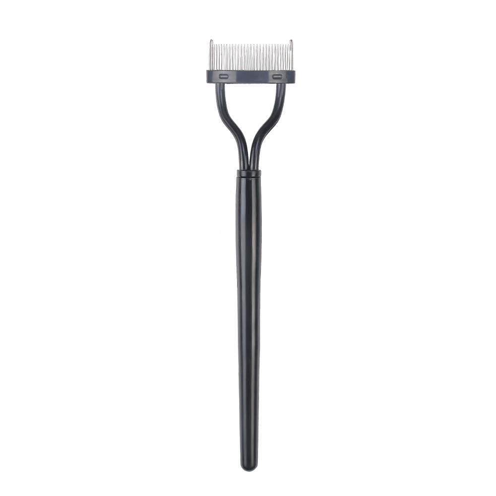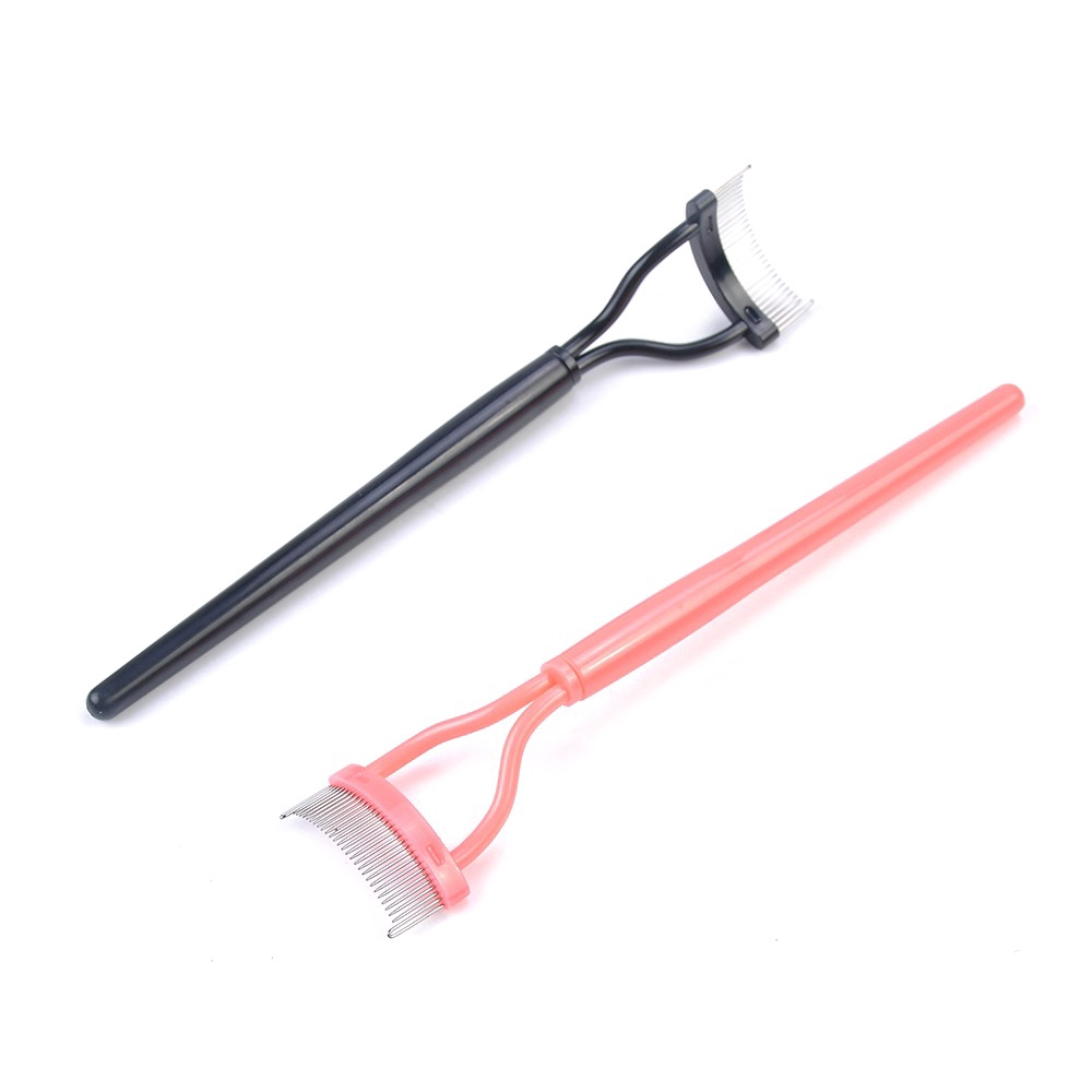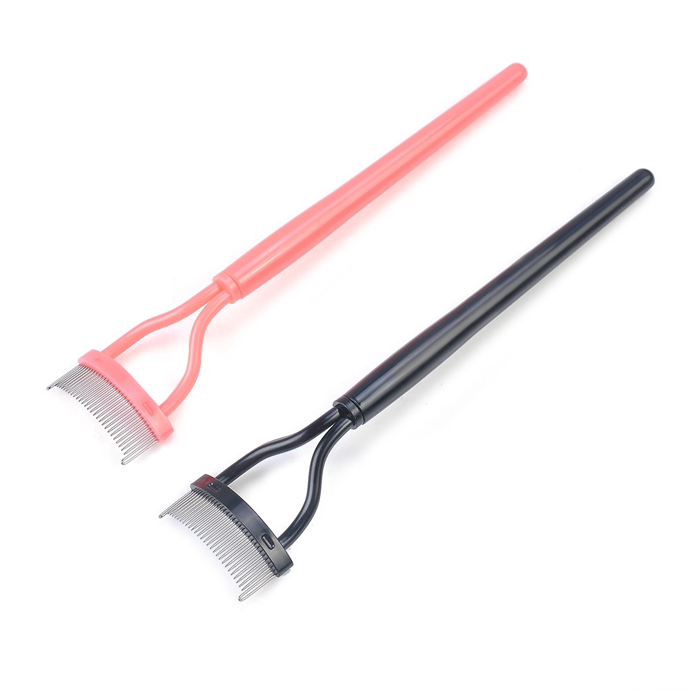 Product Description: 100% High Quality Material: plastics+stainless steel Size:total length:13.5cm width:2.6cm Color: pink/black weight:6g Packing: no box just a plastic bubble bag Products include:1pc eyelash comb Hope you have a happy shopping!