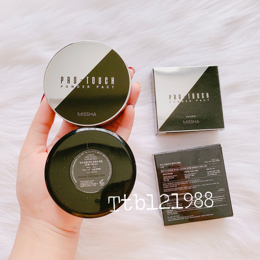 Phấn Nén Missha Pro-Touch Powder Pact chứa thành phần có nguồn gốc thực vật và các polymer, với lớp phấn mỏng nhẹ che phủ lỗ chân lông giúp da mịn màng, các hạt phấn cải thiện bề mặt da trông tươi sáng Chứa chiết xuất mật ong và dầu dừa giúp phấn phủ luôn tươi tắn và lâu xuống màu, tạo hàng rào bảo vệ và giữ ẩm cho da suốt nhiều giờ Shop có sẵn 2 màu: No.21 – Tông Sáng phù hợp cho da trắng No.23 – Tông Tự Nhiên phù hợp cho da tự nhiên #phấnnén #missha #tiệnlợi #protouch #powderpact #dễdửdụng #phùhợpmọiloạida