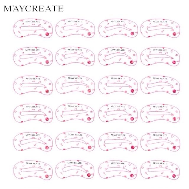 Bộ khuôm kẻ mày Maycreate cả bộ nguyên hộp nhựa có 24 kiểu mẫu kẻ mày. Bán nguyên hộp, không bán lẻ - Chất liệu nhựa dẻo cao cấp vô cùng mềm mại - Xuất xứ: Trung Quốc - Bảo hành: không bảo hành #khuonmay #maycreate