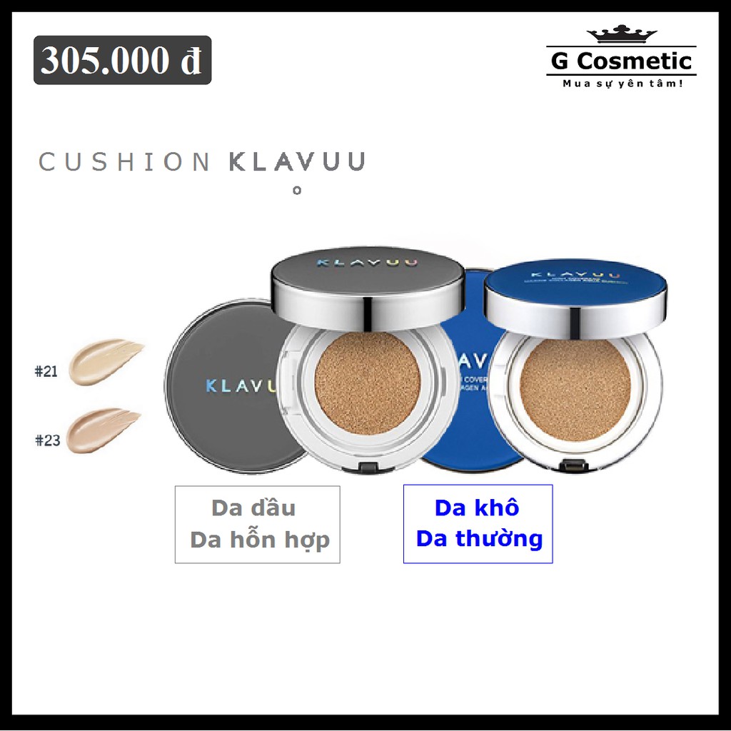 - Thương hiệu: Klavuu - Xuất xứ: Hàn Quốc - Phân loại: + Xanh: Da khô, da thường + Xám: Da dầu, da hỗn hợp - Klavuu, một thương hiệu K-beauty gây xôn xao ở Hàn Quốc với tất cả các celeb và blogger làm đẹp, được ra mắt đầu năm 2016. Mặc dù mới xuất hiện nhưng hãng đã nhanh chóng chiếm được sự yêu thích của các tín đồ làm đẹp trên toàn thế giới. Klavuu là một thương hiệu tập trung vào sức mạnh của chiết xuất ngọc trai tự nhiên để làm sáng và dưỡng ẩm cho da. Tất cả các sản phẩm của họ đều chứa ngọc trai, một trong những thành phần chăm sóc da đã được thử nghiệm kiểm chứng được sử dụng trong nhiều thế kỷ để làm sáng và hydrat hóa làn da. Klavuu làm sống lại khái niệm này nhưng cũng đẩy mạnh nó lên bằng cách kết hợp thêm các xu hướng và công nghệ chăm sóc da mới nhất. - Klavuu BLUE PEARLSATION High Coverage Marine Collagen Aqua Cushion (XANH): + Tạo hiệu ứng da căng bóng trong trẻo như hồ nước nơi “Ốc đảo” Oasis + Độ cover tốt, lâu trôi mà vẫn đảm bảo dưỡng ẩm cho da + 3 chức năng trong 1 sản phẩm: làm trắng, chống nắng, cải thiện nếp nhăn. + “NẠP” nước và độ ẩm cho da. + Cho bạn một lớp nền như ý muốn với độ cover tốt, tự nhiên, có thể dặm nhiều lớp cho đến khi được lớp nền cuối cùng thật ưng ý. - KLAVUU URBAN PEARLSATION HIGH COVERAGE TENSION CUSHION (XÁM): + Phấn nước Klavuu Urban Cushion với độ che phủ tuyệt vời, giúp che hết mọi khuyết điểm trên làn da của bạn, để lại một lớp nền mịn đẹp tự nhiên. + Thành phần trong Klavuu Urban Cushion giúp giữ ẩm cho da, không để da bị khô rát, bong tróc, tuy nhiên lại đủ để kiềm dầu, không để bóng nhờn. + Klavuu Urban Cushion giúp bạn có thể tiết kiệm thời gian hơn rất nhiều, vì nó có thể thay thế kem lót, kem nền, kem dưỡng ẩm và cả kem chống nắng. + Với chỉ số SPF50 PA+++ thì chắc chắn các bạn đã đủ tự tin để ra đường mà không cần bôi kem chống nắng