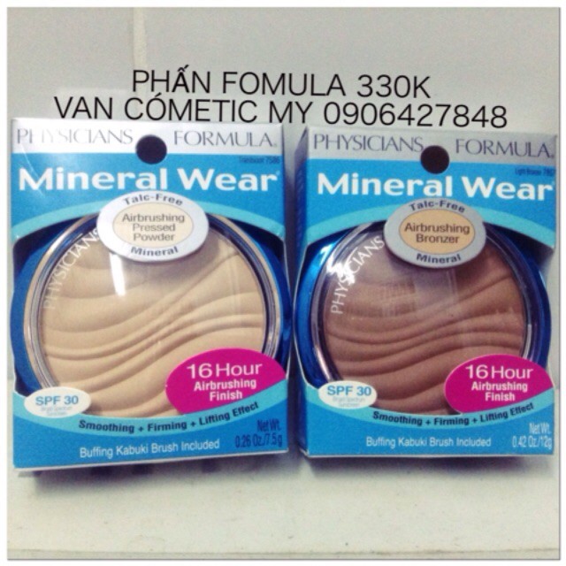 Phấn phủ Physicians Formula Mineral Wear Talc-Free Mineral Airbrushing Pressed Powder SPF 30 GIA BAN ; 330.000 VND Công dụng chính: Bột khoáng siêu mịn cung cấp độ bao phủ hoàn hảo. Che phủ đi các nếp nhăn, vết chân chim, vết thâm và giảm tác hại của ánh nắng mặt trời với chỉ số chống nắng SPF 30 Ít gây dị ứng, không hương liệu, không paraben, không kích ứng gây mụn trứng cá, đã được kiểm nghiệm bởi bác sỹ da liễu. - Xuất xứ: Mỹ. - Trọng lượng tịnh: 7,5g