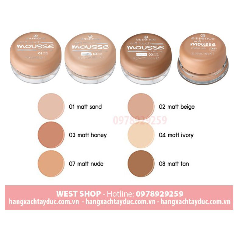 ✨✨ Mousse là một dạng của phấn kem nên tròng quá trình vận chuyển hộp sẽ bị chảy như trên hình Shop có chụp chi tiết, nên trong qúa trình đặt hàng các bạn cân nhắc kỹ giúp shop nhé. Cho làn da mịn hoàn hảo 100%, duy trì độ ẩm cần thiết cho da suốt 14h Công thức siêu nhẹ làm cho da thoáng không bị bít lỗ chân lông, độ che phủ hoàn hảo Hiệu quả che phủ mịn cả ngày mà bạn không cần phải dặm lại Sản phẩm không dầu , không hương liệu, đã được thử nghiệm da liễu Sản phẩm hoàn toàn không gây mụn, an toàn cho cả làn da nhạy cảm Phấn tươi ESSENCE SOFT TOUCH MOUSSE MAKE-UP 💰Giá: 150k 🏪 Xuất xứ: Made in Germany ⛄ Hãng: Essence 🔨 Trọng lượng: 16g ✨✨ Mousse là một dạng của phấn kem nhưng được cô đặc lại, chính vì vậy nó chứa đựng đầy đủ mọi tính năng và ưu điểm của phấn kem, tạo lớp nền mỏng mịn, trong suốt siêu khô thoáng. ✨✨ Mousse che được những khuyết điểm như mụn và vết thâm cho bạn một lớp nền hoàn hảo tự nhiên trong suốt mà không cần đánh thêm phấn bột. ✨✨ Sản phẩm có khả năng kiềm dầu cực kì tốt, giữ cho lớp nền lâu trôi trong suốt thời gian dài, phù hợp cho mọi loại da - đặc biệt là da dầu. ✨✨ Thành phần không chì và chất bảo quản, chiết xuất hiệu quả cao từ nguyên liệu tươi và không chứa chất bảo quản, Essence Soft Touch Mousse an toàn với mọi loại da. ✨✨ Dưỡng chất từ thảo mộc tự nhiên trong phấn giúp da chống lại quá trình lão hóa da.