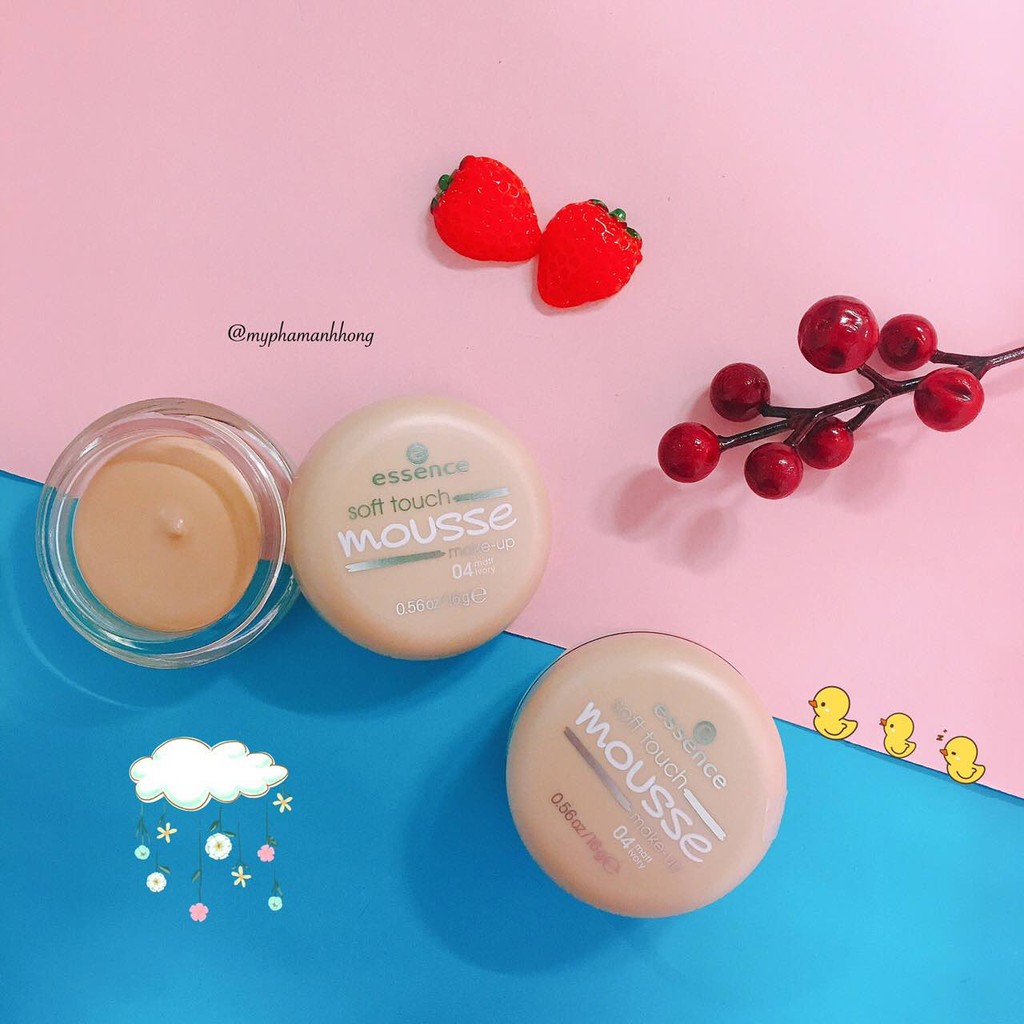 Phấn tươi Essence Soft Touch Mousse Xuất xứ: Hàng xách tay Đức Hãng sản xuất: Germany Trọng lượng: 16gr – Công dụng và độ che phủ “thần thánh”: Với thành phần không chì, chiết xuất hoàn toàn từ nguyên liệu tươi và không chứa chất bảo quản, bên cạnh công dụng chính là tạo lớp nền khi trang điểm, phấn tươi Essence soft touch mousse make-up còn có khả năng dưỡng da giữ ẩm và kiềm dầu vô cùng hiệu quả chỉ với một lớp phấn siêu mỏng nhẹ. – Có khả năng kiềm dầu từ 8h-12h là dạng mousse khi đánh không bị bết dính như các loại kem BB, CC thông thường. Không cần thiết phải phủ thêm phấn bột nếu make-up kiểu nhẹ nhàng. Thích hợp cho mọi loại da đặc biệt là da dầu.