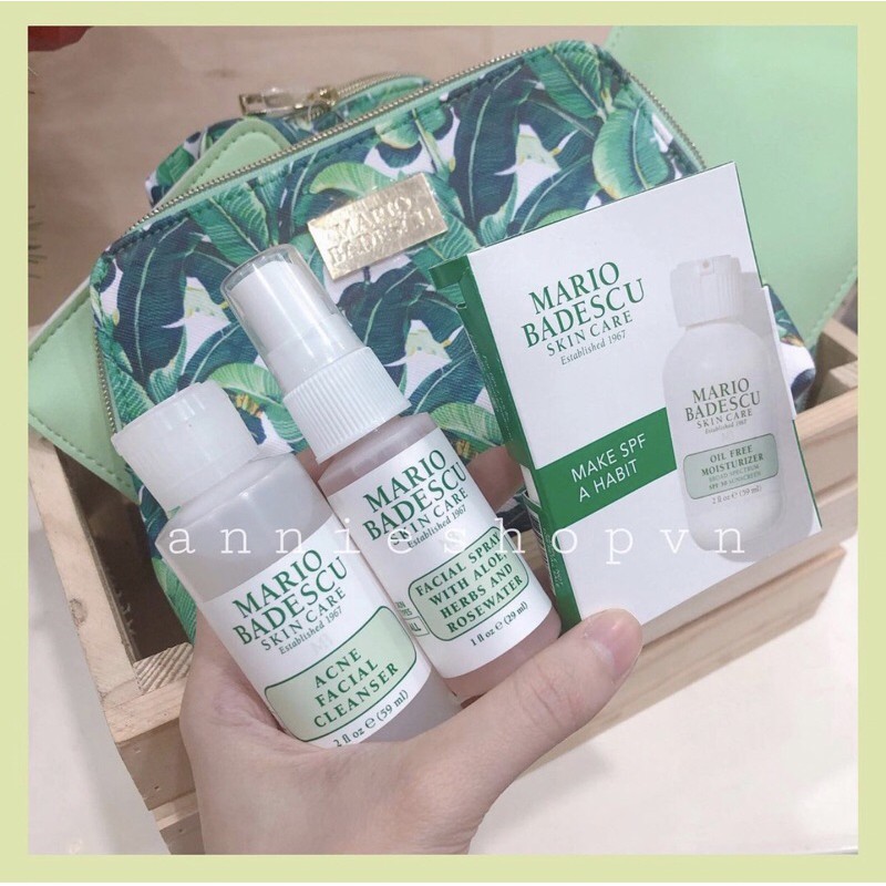 Bán set thế này thì nhanh đi lắm! Tại tính ra giá siêu hơi mà. Mua nhanh để còn hàng nè khách ơiii 😚 🌿🌿 𝙈𝘼𝙍𝙄𝙊 𝘽𝘼𝘿𝙀𝙎𝘾𝙐𝙀 𝘽𝙖𝙡𝙢 𝙋𝙧𝙞𝙣𝙩 🌈 Gồm 4 sản phẩm: Sửa rửa mặt 59ml; Xịt khoáng Facial Mist 29ml; kem dưỡng chống nắng 5ml + tặng kèm túi makeup bag xinh xắn như hình 🌈Cả set mini hợp nhất để dùng thử, hoặc đi du lịch ạ. Nói Mini chứ món nào cũng to to cầm thích lắm hihi bỏ túi vừa vặn đỡ cồng kềnh 😌