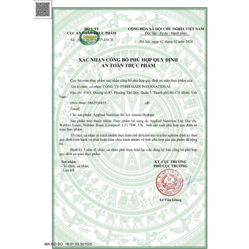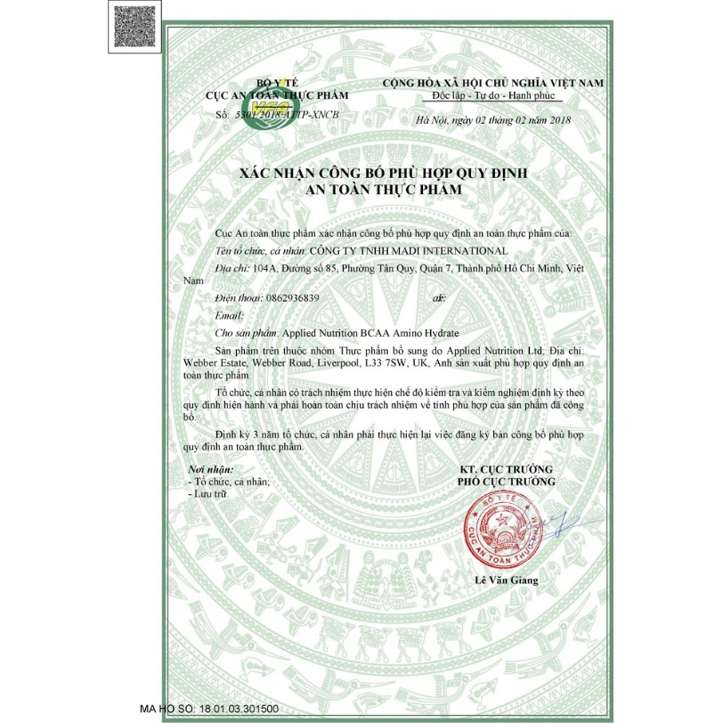 VÌ LÝ DO KHỐI LƯỢNG QUÁ NHỎ, ĐƠN HÀNG HAY THẤT LẠC, KHÁCH VUI LÒNG ORDER TỪ 10 GÓI TRỞ LÊN. NHỮNG ĐƠN DƯỚI 10 GÓI SẼ BỊ TỪ CHỐI BỞI NHÀ VẬN CHUYỂN VÀ SẼ TỰ ĐỘNG HUỶ ĐƠN. XIN CẢM ƠN! ✅Tỉ lệ BCAA vàng tiêu chuẩn 2:1:1 phục hồi toàn diện được kiểm chứng và thông dụng nhất ✅Có các chất hỗ trợ phục hồi nhanh chóng như Glutamine, Chất điện giải ✅Có chất hỗ trợ tập luyện Citruline và các Vitamine ✅Hương vị ngon tuyệt vời không hề còn hậu vị đắng của BCAA nguyên chất ************************************************* Xuất xứ : UK (United Kingdom ) Hạn Sử dụng : Theo bao bì nhà sản xuất Sản phẩm này không phải là thuốc và không có tác dụng thay thế thuốc ************************************************* Xây dựng và giữ cơ với 7 GRAMS BCAAs tốt nhất được thiết kế tự nhiên với tỷ lệ 'vàng' đã được nghiên cứu rộng rãi 2:1:1 cùng với Glutamine và Citrulline Malate. Cộng với các chất điện giải hydrat hóa, BCAA AMINO HYDRATE rất ngon, tươi mát, không đường giúp bạn vượt qua những buổi tập cường độ cao và thời gian lâu. BCAA AMINO HYDRATE chứa 7grams amino acids trong mỗi lần dùng. Không giấu giếm, không 'dùng chiêu', không 'độn' những amino acids rẻ tiền. Một vài đặc điểm nổi bật của BCAA AMINO HYDRATE: 7g BCAAs - 2:1:1 tỉ lệ chuẩn giữa Leucine, Isoleucine và Valine Được chứng minh thật sự hiệu quả qua 2 thí nghiệm trên 2 trường đại học khác nhau Không chứa đường và Carbohydrate 3,5 grams Leucine cho hiệu quả đồng hóa protein nuôi dưỡng cơ bắp Chất điện phân giúp cải thiện khả năng cung cấp nước Không Calo Điểm công: Hỗ trợ sức mạnh và sức bền Tăng kích thước cơ bắp Hỗ trợ phục hồi và tái tạo những mô cơ tổn thương Duy trì mô cơ, hạn chế mất cơ. Chứng nhận trong thể thao Xây dựng và duy trì cơ bắp với 7 grams BCAAs tiêu chuẩn với tỉ lệ 2:1:1 được công nhận bởi các chuyên gia nghiên cứu về lĩnh vực sức khỏe hàng đầu thế giới- đi cùng với Glutamine và Citrulline Malate(Citrulline hoạt động cơ bản như là một tiền thân của sản xuất oxit nitric, thúc đẩy sự giãn mạch và giúp kích thích hệ tuần hoàn kết hợp với việc tăng sản xuất oxit nitric, giúp cải thiện cơ bắp giữ nitơ và nâng cao tỷ lệ tổng thể của tổng hợp protein cơ). Thêm vào đó, một hỗn hợp cân bằng các chất hydrat hóa và chất điện giải khiến sản phẩm mang hương vị hấp dẫn hơn bao giờ hết, đầy năng lượng và không chứa đường lí tưởng cho bất kì ai đang trong quá trình tập luyện. Hoàn hảo cho sử dụng trước, sau và trong quá trình tập luyện Đối với những vận động viên tầm cỡ thế giới, giới thể hình chuyên nghiệp, những vận động viên tham gia giải thể hình, bất kì đối tượng nào đang trong quá trình tập luyện tăng cường cơ bắp đều phù hợp để sử dụng BCAA AMINO HYDRATE với mục đích tăng cường sức mạnh giúp bạn tập năng hơn, lâu hơn và dẻo dai hơn. Sử dụng 2 khẩu phần mỗi ngày, BCAA AMINO HYDRATE còn có khả năng đốt cháy lượng mỡ thừa đồng thời cải thiện tính năng phát triển mô cơ mới. Không chỉ có vậy, bằng cách biên soạn lại những chuỗi protein tổng hợp và cân bằng ngân hàng tế bào duy trì năng lượng, BCAA AMINO