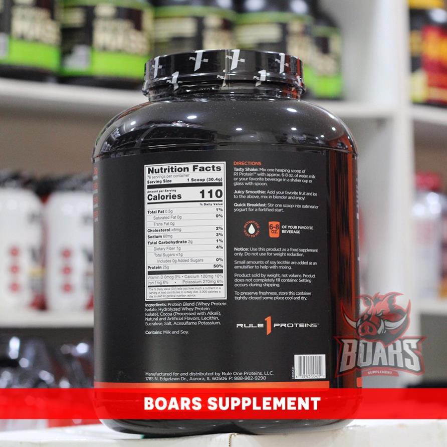 Rule One Protein không tiếc chi phí khi xây dựng công thức của R1 Protein ™, chỉ tìm nguồn cung ứng tốt nhất, nguyên liệu tinh khiết nhất để dần trở thành một loại đạm whey tốt nhất. Tất cả các protein của chúng tôi đang thực sự instantized (đầy đủ kết tụ) để đảm bảo dễ dàng trộn, ngay cả trong điều kiện giá lạnh nhất của chất lỏng. Plus, hương vị của chúng tôi là phun khô, có hương sâu sắc hơn, hương vị phong phú hơn sẽ không tiêu tan, ngay cả với thời hạn sử dụng kéo dài. Với Cônlg thức hầu như không có chất béo, tinh bột, hoặc cholesterol - và ZERO bột kem thêm hoặc gums được thêm vào giốngcác sản phẩm protein khác có xu hướng sử dụng như chất tạo đặc - bạn đang nhận được một trong những sản phẩm cao cấp được phân lập tinh khiết nhất trên thị trường. Hãy nhớ rằng, các đầu vào tốt nhất = đầu ra tốt nhất. Thành phần có trong 1 muỗng rule1: -Trong Rule 1 (Rule one) tỷ lệ protein chiếm đến gần 90% là protein, 25gram đạm tinh khiết isolate và hydrolyzed isolate whey -BCAA lên đến 6g trong đó lượng leucine chiếm đến 3g. Leucine được biết là hợp chất giúp hấp thu protein, lượng leucine được cho vào cơ thể càng cao thì lượng đạm sẽ được hấp thu sẽ càng nhiều. - 0 fat và carb - Hương vị cực ngon Xuất Xứ : USA Hạn sử dụng: 2 năm kể từ ngày sản xuất SẢN PHẨM KHÔNG PHẢI LÀ THUỐC, KHÔNG CÓ TÁC DỤNG THAY THẾ THUỐC CHỮA BỆNH HOTLINE: 086 912 0171