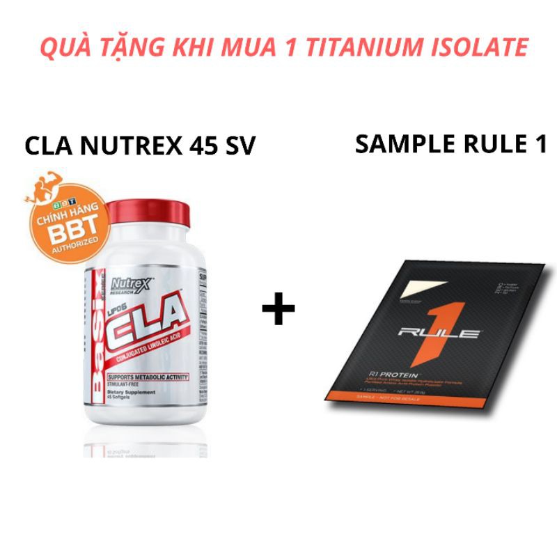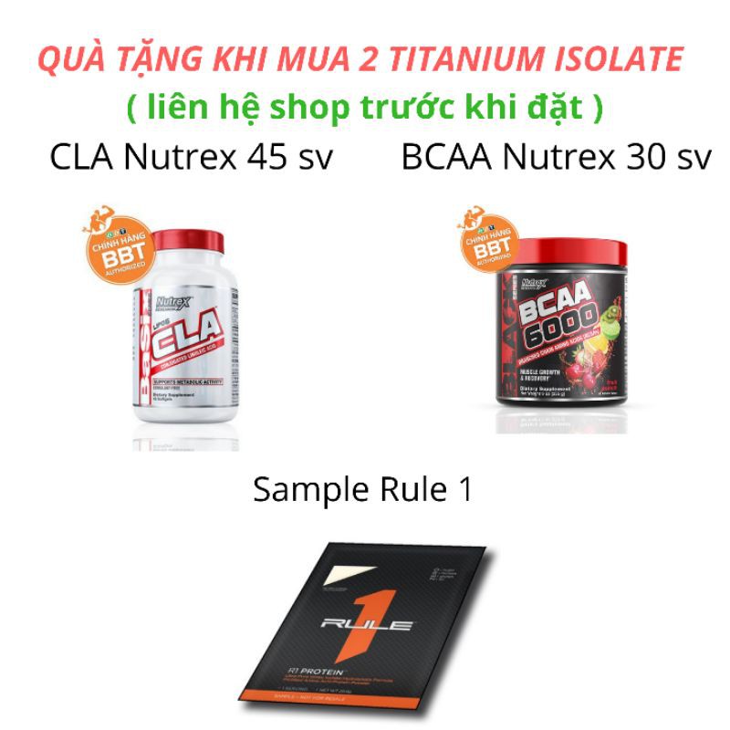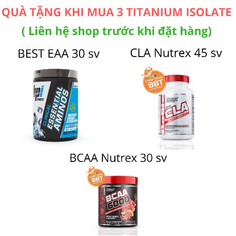 Titanium isolate - 27g whey protein isolate hydrolyzed 1 liều dùng - Không chứa đường và béo - 7g BCAA trên liều dùng - Không chứa lactose Hsd 2022 Sản phẩm không phải là thuốc và không có tác dụng thay thế thuốc chữa bệnh