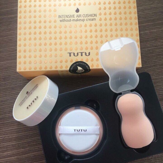 PHẤN NƯỚC TUTU tặng kèm mút cao cấp Sp này thuộc tone da trắng Sài sẽ đẹp Phần nước TUTU giúp che khuyết điểm, làm đều màu da đồng thời giúp làm giảm nếp nhăn, đốm đen và mang lại cho bạn làn da trắng sáng tự nhiên. - Phấn giúp làn da trở nên mượt mà hơn, rạng rỡ hơn nhờ chiết xuất từ những thành phần tự nhiên, ưu điểm vượt trội của kem TUTU này ở điểm giúp chống nhăn, kết cấu kem mỏng, nhẹ. Lớp trang điểm trông thật tự nhiên, không lo quá dày như 1 số sản phẩm khác trên thị trường. - Chất kem mịn mượt không làm tắc nghẽn lỗ chân lông. Với miếng bông trang điểm, bạn sẽ dễ dàng tán đều kem trên mặt, không sợ vấn đề làn da không đều màu nữa.