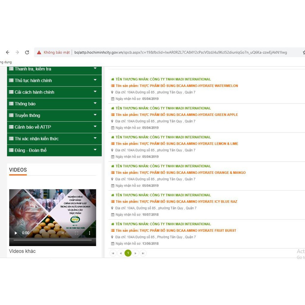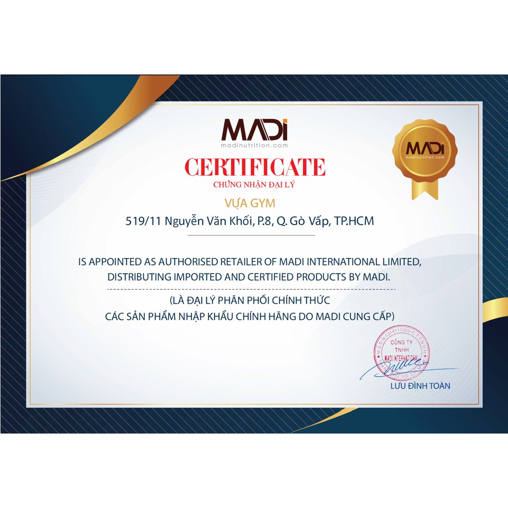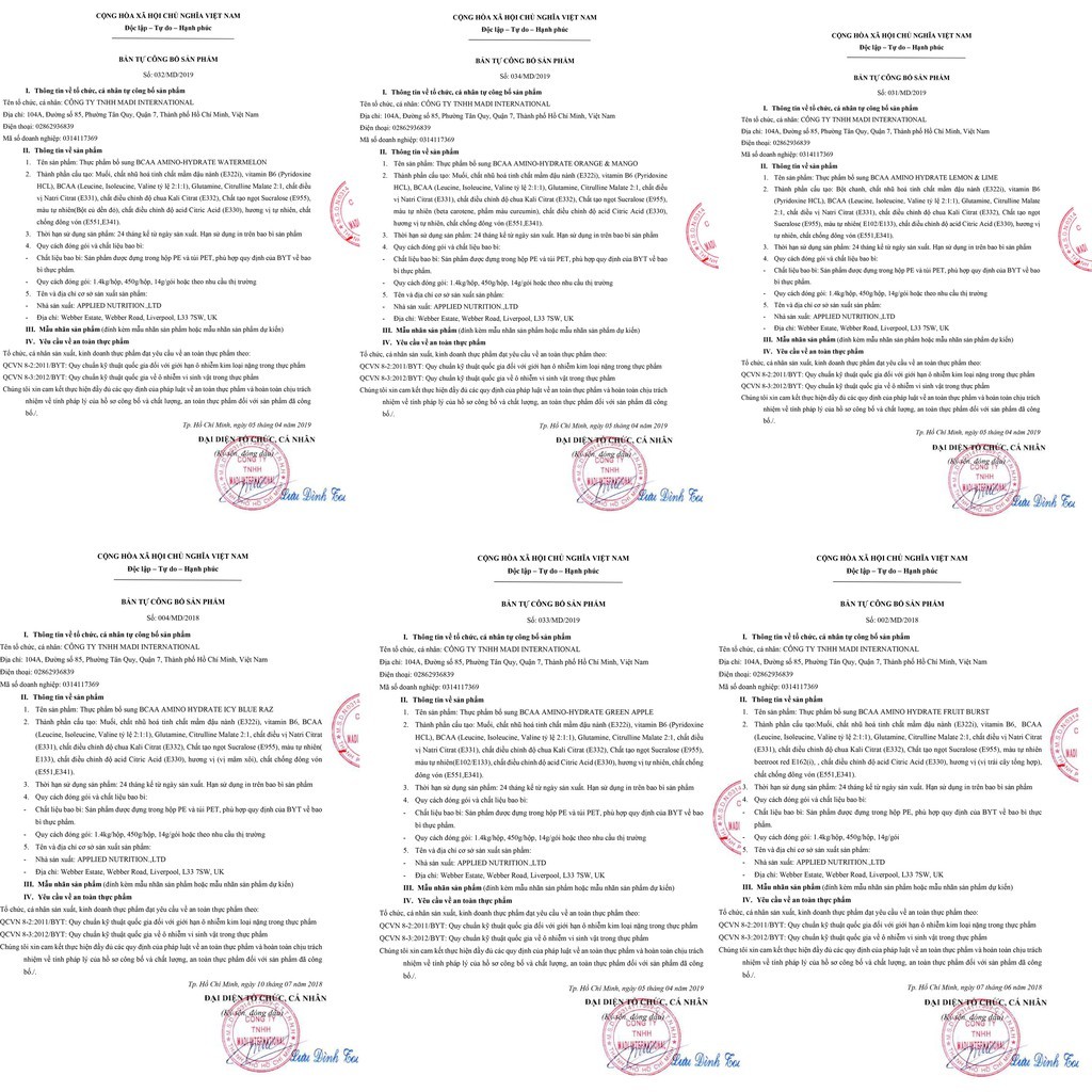 Tăng tổng hợp protein cho cơ Tăng sức mạnh cơ bắp và năng lượng Bổ sung chất điện giải và hydrat hóa của cơ thể Hồi phục nhanh hơn Giảm sự dị hóa cơ Cung cấp mức tối đa của BCAA BCAA Amino Hydrate – lợi ích không thể tuyệt vời hơn BCAA Amino Hydrate là thực phẩm bổ sung không đường mà tất cả các vận động viên, Bodybuilders, Powerlifters, Boxers và tất cả những người “nâng tạ” nên tiêu thụ. BCAA Amino Hydrate được bào chế để cung cấp amino acids kịp thời cho cơ bắp. Từ đó giúp tối đa hóa cường độ đào tạo và sức tập luyện của bạn trong phòng tập Khi BCAAs được cung cấp vào cơ thể, nó sẽ thứ đẩy hàm lượng alanine trong máu, hàm lượng này sẽ chuyển hóa thành glucose trong gan, sau đó chuyển ngược lại cơ bắp để sử dụng như năng lượng. Lượng glycogen được BCAAs trữ lại này không những giúp bạn tập sung hơn mà còn giúp bạn phục hồi cơ tốt hơn sau buổi tập. Hồi phục và dự trữ năng lượng trong quá trình tập luyện là chìa khóa để bạn phát triển. ➡️️THÔNG SỐ SẢN PHẨM: – Mùi vị: Fruit Burst, Green Apple, Icy Blue Raz, Lemon & Lime, Orange & Mango, Pineapple, Watermelon – Số Lần Dùng: 32 – Thương Hiệu: Applied Nutrition ➡️HƯỚNG DẪN SỬ DỤNG: Pha 1 phần ăn (1 muỗng 14g) với 500ml nước và lắc đều. Tiêu thụ trong khi tập thể dục vào những ngày tập luyện hoặc suốt cả ngày vào những ngày không tập luyện. ⚠️LƯU Ý: Kiểm tra với chuyên gia y tế có trình độ chuyên môn trước khi sử dụng sản phẩm này nếu bạn dưới 18 tuổi, đang mang thai hoặc cho con bú hoặc nếu bạn có bất kỳ (các) tình trạng bệnh lý đã biết hoặc nghi ngờ và hoặc đang dùng bất kỳ (các) thuốc theo toa hoặc thuốc không kê đơn nào. Không được sử dụng để thay thế cho một chế độ ăn uống đa dạng và lối sống lành mạnh. Bảo quản sản phẩm này ở nơi khô mát, tránh xa tầm tay trẻ em. Không vượt quá mức sử dụng được đề xuất LIÊN HỆ: 🌐 vuagym.com 📌 519/11 Nguyễn Văn Khối, P8, Q. Gò Vấp, TP.HCM ⏰ 9:00 – 21:00 (Tất cả các ngày) 📧 [email protected] 📞 (028) 6257 8338 – 0969 8383 69 Xuất xứ: UK (United Kingdom ) Hạn Sử dụng: Ghi trên bao bì nhà sản xuất ➡️ SẢN PHẨM NÀY KHÔNG PHẢI LÀ THUỐC VÀ KHÔNG CÓ TÁC DỤNG THAY THẾ THUỐC CHỮA BỆNH.