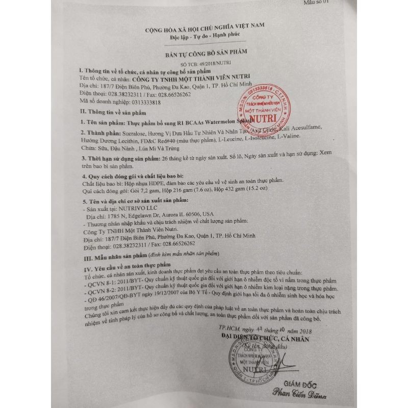 Công thức chuỗi axit amin! Khi nói đến hồi phục cơ bắp, BCAA là cần thiết. Những BCAA này không thể được tổng hợp trong cơ thể chúng ta; chúng phải được lấy từ thực phẩm giàu protein và chất bổ sung. Các BCAA của R1 cung cấp cả ba axit amin quan trọng theo tỷ lệ 2: 1: 1 của leucine so với isoleucine và valine. Công thức BCAA của chúng tôi không có hương vị và dễ dàng trộn vào đồ uống bạn chọn. Không chất phụ gia Không thêm đường Không chất kích thích R1 BCAAS Tốt Hơn 5 g micronized BCAAs Tỉ lệ 2:1:1 của leucine, isoleucine và valine Không mùi – thuận tiện để thêm vào đồ uống và protein Hoà tan ngay lập tức Sản xuất và đóng gói tại nhà máy đạt chuẩn NSF GMP ở Hoa Kỳ Câu hỏi thông thường AMINO ACIDS (BCAAS) LÀ GÌ VÀ CÓ TÁC DỤNG GÌ? BCAA là một tập hợp của các axit amin thiết yếu (EAA), được đặt tên như vậy vì cấu trúc hóa học đặc biệt của chúng. Khi mọi người nhắc đến BCAA, họ thường nói về ba loại axit amin cụ thể: leucine, isoleucine và valine. BCAAs tham gia vào quá trình tổng hợp protein, bảo tồn khối lượng cơ nạc, năng lượng và sức bền cơ bắp. CẦN SỬ DỤNG BAO NHIÊU? 5g uống một đến ba lần mỗi ngày. KHI NÀO LÀ THỜI GIAN TỐT NHẤT ĐỂ SỬ DỤNG BCAAS? Buổi sáng, trong / sau tập luyện, và / hoặc trước khi đi ngủ. *SẢN PHẨM NÀY KHÔNG PHẢI LÀ THUỐC VÀ KHÔNG CÓ TÁC DỤNG THAY THẾ THUỐC CHỮA BỆNH #r1bcaa #rule1bcaa #bcaa #bcaar1 #bcaarule1