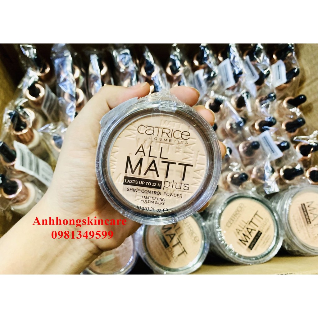 Phấn phủ Catrice All Matt Plus Shine Control Powder – Các hạt phấn siêu nhỏ, bám chặt khi đánh lên da. Đặc tính nổi trội của loại phấn phủ này chính là độ che phủ hoàn hảo và khả năng hút dầu cực tốt, phù hợp cho làn da dầu, hỗn hợp thiên dầu. – Đặc biệt, độ bền của phấn cực chuẩn, giữ được tận 12h, giúp bạn có một làn da trắng hồng láng mịn không tì vết. – Phấn phủ nén Catrice All Matt Shine Control powder màu trong suốt, sẽ không làm thay đổi màu lớp nền của bạn và dễ dàng sử dụng với mọi màu nền – Với công nghệ vượt bậc, tiên tiến nhất của Đức, hãng mỹ phẩm Catrice đã cho ra đời phấn phủ Catrice All Matt Plus Shine Control Powder với các thành phần cực kì an toàn cho da, đã được kiểm nghiệm gắt gao nhất.