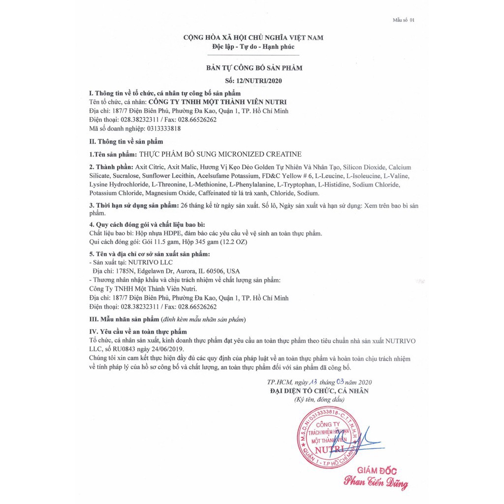 - Tăng số lượng cơ bắp nạc đáng kể chỉ trong hai tuần sử dụng. - Nâng cao khả năng tập luyện với hiệu suất cao, tăng mức năng lượng, và tăng tốc quá trình phục hồi - Tăng năng lượng dự trữ trong cơ có từ sự tổng hợp protein, và giảm tối thiểu sự mất protein. - Creatine có hiệu quả tuyệt vời khi tác dụng với nước trong tế bào cơ bởi lẽ nó giúp nâng cao sự phát triển các cơ và đồng thời giúp cơ lớn hơn và khoẻ hơn. - Creatine tăng sức mạnh, độ bền bỉ, và mức độ phục hồi. Thêm vào đó, Creatine cũng được phát hiện: Creatine đẩy nhanh quá trình mất mỡ trong khi tạo cơ khối lượng cơ nạc. THÀNH PHẦN: 100% micronized creatine monohydrate HƯỚNG DẪN SỬ DỤNG: Pha 1 Serving 3.4g (1 muỗng) với 300ml nước tùy chọn. Dùng 1 lần mỗi ngày. Xuất Xứ: USA Hạn Sử Dụng: 2022 SẢN PHẨM KHÔNG PHẢI LÀ THUỐC VÀ KHÔNG THAY THẾ THUỐC CHỮA BỆNH #creatine #bpi #micronized