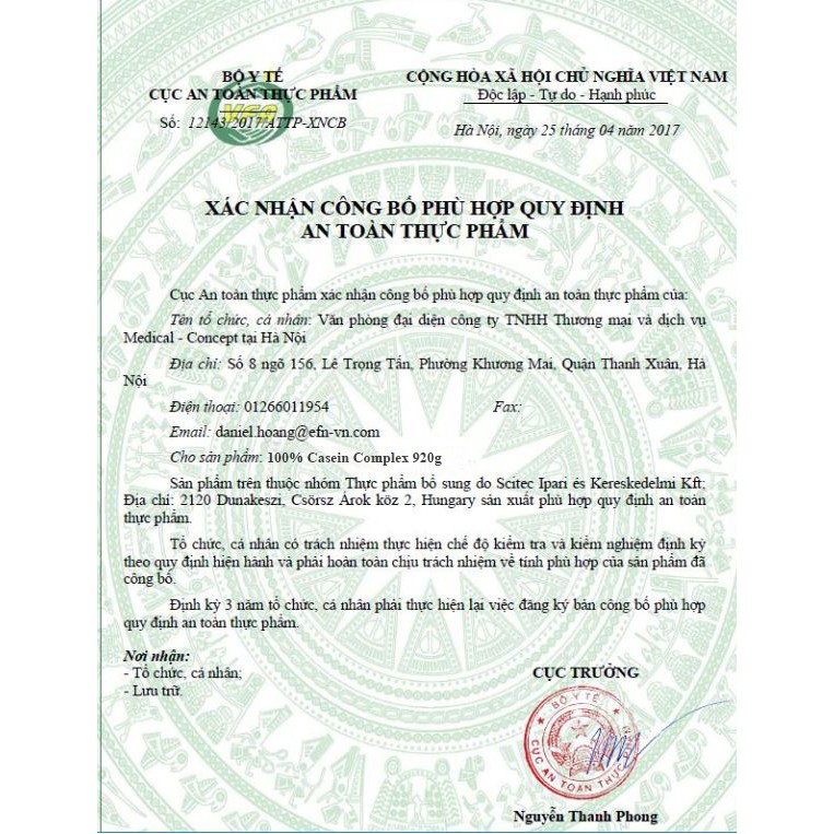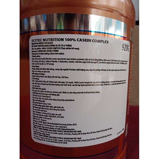Protein Trải Dài - Nuôi Cơ, Chống Teo Cơ Ban Đêm - Hỗ Trợ Tăng Cơ - 100% Casein Complex - Scitec - 920gr Casein là gi? Casein là chất đạm (protein) từ nguồn gốc là sữa động vật có vú, thường thì là từ sữa bò. Chất đạm trong sữa 80% là Casein, tức là protein trong sữa thì 8 phần là Casein, ví dụ: 1Lít (1000 ml) sữa trung bình sẽ chỉ có tầm ~34gr protein. và 34gr protein này thì 8 phần là protein Casein (trong sữa chỉ có 3.4% là protein thôi). Casein là thành phần “đặc”, thế cho nên Casein thì ”hấp thụ chậm. Công dụng của 100% Casein Complex: Duy trì nuôi dưỡng cơ bắp suốt nhiều giờ. Chính vì lý do này mà casein protein được đề nghị có tính chất chống dị hóa lâu hơn (lên tới 7-8 giờ sau khi uống) so với một loại protein tiêu hóa nhanh chóng. Tăng cường sức khỏe đại tràng Cung cấp nguồn protein chất lượng cao Là một nguồn giàu canxi có thể có lợi cho sức khỏe của xương Hỗ trợ đốt cháy mỡ thừa Nguồn cung cấp glutamin dồi dào Đối tượng sử dụng: người trưởng thành; vận động viên thể dục, thể thao; người ăn chay tập gym.