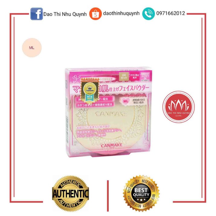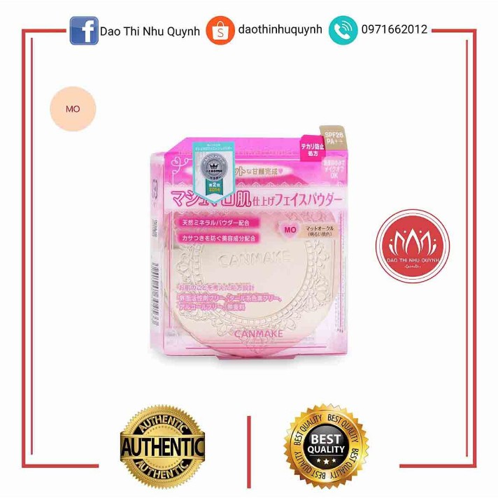 Phấn phủ Canmake Marshmallow Finish Powder SPF26.PA++ 💸Giá: #290k ✈️Xuất xứ: Canmake, Janpanese 📦TL: 10g ✴️Phấn Phủ Siêu Mịn Kiềm Dầu ✴️Có sẵn màu: [MO] Matte Ochre – Màu trắng hồng [MB] Matte Beige Ochre – Màu tự nhiên [ML] Matte Light Ochre – Màu trắng sáng 👉Cho bạn lớp phủ mỏng mịn tự nhiên, che các lỗ chân lông to,giữ lớp trang điểm lâu trôi và bền màu suốt cả ngày. 👉Loại phấn tinh tế kết hợp từ tính chất mượt mà của lụa và mềm dịu như kẹo Marshmallow ♡ ☑️Không dùng phụ gia khoáng chất để tốt cho làn davà dễ dàng làm sạch bằng cách rửa mặt bình thường. ☑️ Tốt cho làn da bạn với 72% thành phần là khoáng chất. ☑️ Không cần chất tẩy rửa đặc biệt, tẩy trang theo cách rửa mặt bình thường. ☑️ Không hoạt chất bề mặt, không chất nhuộm màu gốc hắc ín, không cồn, không chất tạo hương. ☑️Chế tạo với công thức ngăn ngừa lớp trang điểm bị trôi do bóng nhờn, xỉn màu, khô sạm. ☑️ Chứa phấn hạn chế bóng nhờn. Loại phấn này hấp thụ bã nhờn ngăn tình trạng bóng nhờn, dính nhớp và phai màu lớp trang điểm. ✴️✴️✴️Cách dùng Thực hiện theo cách trang điểm thông thường: Săn sóc da → Đánh phấn lót → Đánh phấn nền (nên dùng phấn dạng nước hay kem) → Đánh phấn phủ Marshmallow. ・Lấy một ít phấn lên bông phấn, vỗ nhẹ bông phấn lên mu bàn tay để rũ bớt phấn thừa trước khi thoa phấn.