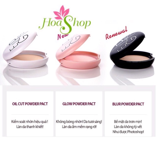 Xuất xứ: Hàn Quốc - Kiểm soát bã nhờn, không gây bóng nhờn, giúp duy trì lớp trang điểm suốt cả ngày. - Có độ che phủ tương đối cao, đặc biệt se khít lỗ chân lông cho da tạo nên một lớp trang điểm hoàn hảo. - Hạt phấn siêu nhỏ, mịn, trong veo, độ bám cao, khả năng thấm hút mồ hôi tốt. Đối với các bạn da dầu nhiều hoặc bị mụn, lỗ chân lông to thì không cần lo lắng đây là sản phẩm trang điểm vô cùng hữu hiệu: Về series thì gồm có 3 loại: + Oil Cut Powder Pact ( hộp trắng): là loại kiểm soát nhờn, giúp da trắng lên. + Glow Powder Pact ( hộp hồng): là loại không bóng nhờn giúp da tươi sáng. + Blur Powder Pact ( hộp đen): giúp bề mặt da trơn mịn trắng lên trông thấy. Kết cấu : + Của sản phấn khá đẹp và bắt mắt, nhỏ gọn có thể dễ dàng mang theo mình mà không vướng víu gì hết. Biểu tượng cảm xúc kiki + Nó có bông đánh phấn cực mềm luôn, phải nói rất mềm nên khi đánh lên da cảm giác dễ chịu không bị tổn thương cho da. HDSD: Sau khi đã sử dụng base/BB/CC/DD và cả kem chống nắng, lấy 1 lượng phấn phủ bột Eglips thoa đều khắp mặt tập trung những vùng đổ nhiều dầu.
