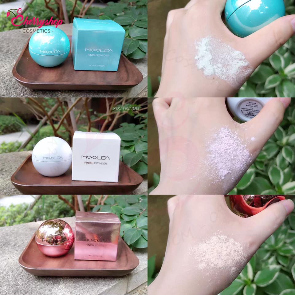 💥🍒Phấn phủ kiềm dầu Moolda Finish Powder ✔Hấp thụ tối đa dầu thừa trên khuôn mặt. ✔Giúp chống lão hoá, làm mịn da, làm sáng da và tăng cường độ ẩm cho da. ✔Khóa ẩm, giảm hiệu ứng bóng dầu lên đến 24h. ✔Không gây bí da hay nổi mụn. 🏷Moolda Finish Powder có 3 phiên bản dành riêng cho từng loại da: 💚 Xanh: cho da dầu và mụn (cool green): giảm kích ứng da, hấp thu dầu thừa 🤍 Trắng: dành cho da siêu dầu và bất chấp mọi kiểu ẩm dầu do thời tiết (nếu da ít đổ dầu thì dùng màu trắng có thể cảm giác da hơi khô) 💗 Hồng: phấn phủ che khuyết điểm, kiểm soát dầu. 🏷Thành phần đặc biệt: rau má, bột ngọc trai, dầu tầm xuân, calamine, bột bơ ca cao...