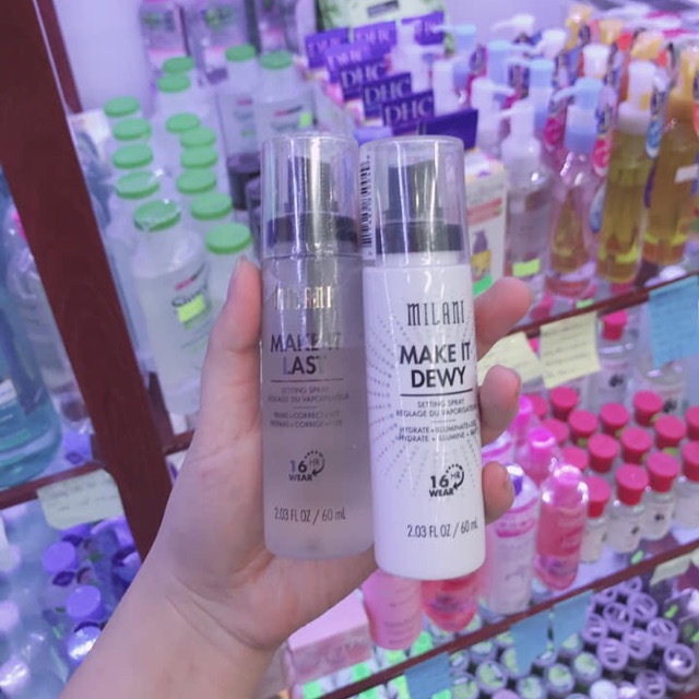 🆘🆘🆘Milani 🏖 Xịt Khóa Trang Điểm Giữ Makeup Make It Dewy Setting Spray🔥🔥 ⛪ Thương hiệu: Milani - Xuất xứ: Mỹ ⛪ ✿ Giá: 170k/ chai Có 2 dòng: ❌❌❣Xịt khóa trang điểm Makeup setting spray Milani make it dewy : - Không chỉ là một loại xịt giữ lớp trang điểm mà nó còn có tác dụng làm da mặt tươi mát căng bóng. - Có tác dụng giúp lớp nền không bị Trôi hay bị Tuột loang lỗ trong cả 16h liên tục ❣Được coi là phiên bản xịt giữ lớp trang điểm như của Mac/ Smashbox/ Urbandecay ❌❌❣Xịt Khoáng Milani Make It Last Setting Spray 16h 60ml : ✔️Một em mang danh hiệu : Mac fix + but better ✔️Được vào list favorite tháng 1 của chị Kath , tháng 2 của chị Tati , Tháng 3 của anh MannyMua ✔️Xịt đa năng làm dịu makep giữ lớp makep cực kì lâu trôi , khi xịt lên cọ đánh mắt hoặc highlight làm phấn lên cực kì chuẩn và lây trôi.