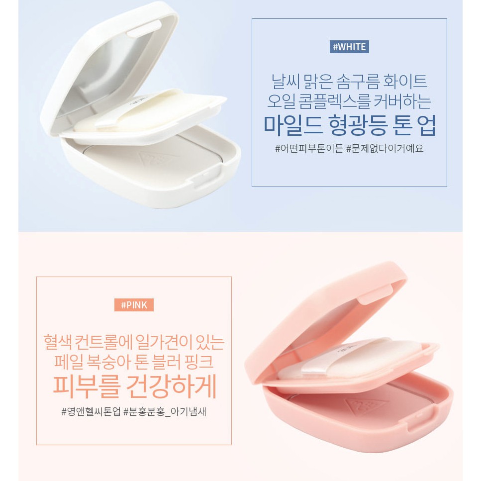 Phấn phủ không màu 3CE Blur Sebum Powder mang đến một lớp phủ matte trong suốt, mịn màng, kèm khả năng hút dầu hiệu quả suốt cả ngày, giữ nền lâu trôi hơn mà không cần phải dặm lại như các loại phấn bột không màu khác. Ngoài ra với công nghệ "BLUR" tạo hiệu ứng mịn màng, mềm mại cho lớp nền như được "Photoshop". - Sản phẩm có thiết kế rất thanh lịch và không thể thiếu đi sự sang chảnh đặc trưng của 3CE, hình dáng vuông vắn nhỏ nhắn cầm rất vừa tay với hai sắc trắng và hồng sữa vô cùng nữ tính. Em này được nhà sản xuất tích hợp một chiếc gương nhỏ xinh ngay nắp bật, giúp bạn có thể “tút tát” lại nhan sắc bất cứ lúc nào. Phần bông mút và phấn nén được ngăn cách bởi một chiếc nắp nhựa mỏng, đảm bảo vệ sinh cho sản phẩm. - Sản phẩm có khả năng cố định lớp make up và lâu trôi, giữ lớp trang điểm không xuống tone trong cả một ngày dài. - Bên cạnh đó, chiết xuất nho trắng cũng được bổ sung vào bảng thành phần với tác dụng chống oxy hóa hiệu quả. Mùi hương thoang thoảng nhẹ nhàng của nho trắng còn giúp bạn thư giản. - Đặc biệt, sản phẩm có khả năng thẩm thấu rất nhanh, chỉ cần touch-up nhẹ nhàng, lớp dầu thừa sẽ được hút sạch, cho bạn một làn da mịn màng tự nhiên, hoàn toàn không để lại các vệt trắng gây mất thẩm mỹ. Sản phẩm có 2 tone màu #White và #Pink với những đặc tính khác nhau: #White: giúp nâng tone và sáng da một cách tự nhiên. Và phù hợp với mọi loại da. Em này có thành phần từ các hạt bột gạo, có khả năng xây dựng lớp màng bảo vệ da, giúp kiểm soát bã nhờn, mang lại một lớp nền mịn màng và nâng tone vô cùng tự nhiên. #Pink: có màu hồng đào cho làn da trắng hồng tươi trẻ và đầy khỏe mạnh. Thành phần em này chứa calamine giúp bảo vệ làn da, kháng viêm và tạo nên một lớp nền mịn màng, khỏe khoắn. Không những thế, sản phẩm còn đem lại một làn da với tone hồng đào nữ tính, hot trending trong suốt nhiều năm qua.