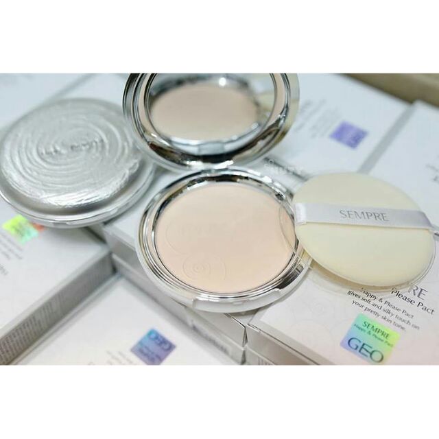 Phấn Phủ Ngọc Trai Siêu Mịn Geo Lamy sempre Happy & Please Pact Trên cả hoàn hảo, Geo chứa những thành phần dưỡng chất được sản xuất từ thiên nhiên, bởi vậy, chúng tôi một lần nữa khẳng định lại với các bạn rằng, loại phấn nền sempre happy & please pact (Geo) có tác dụng che khuyết điểm cực tốt đối với mọi làn da. Phấn nền Geo tác động sâu, mạnh vào cấu trúc từng vùng da giúp chị em thấm hút và loại bỏ tinh chất nhờn hiệu quả trên da mặt đồng thời tạo nên một kết cấu vững cấu vững chắc giúp phấn kem bám thật chắc dưỡng sâu vào trong làn da, đảm bảo lâu trôi. Khi sử dụng phấn kem trang điểm sempre happy & please pact thì những tinh chất có chứa trong loại phấn này liên kết lại với nhau giúp làm đẹp da hiệu quả, tạo nên một lớp bảo vệ và che phủ đồng thời ngăn cách với những tác nhân gây hại như bụi bẩn bám sâu trong da.