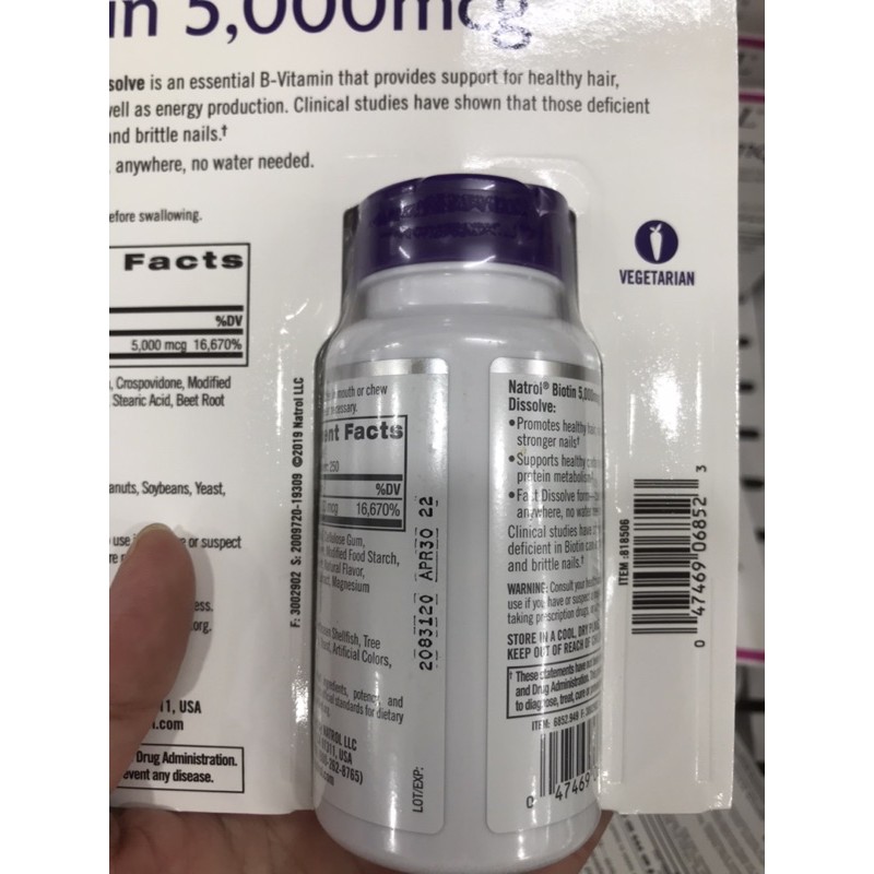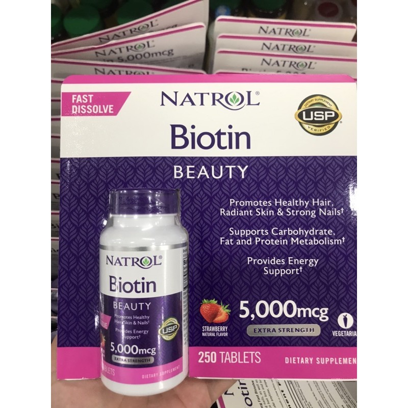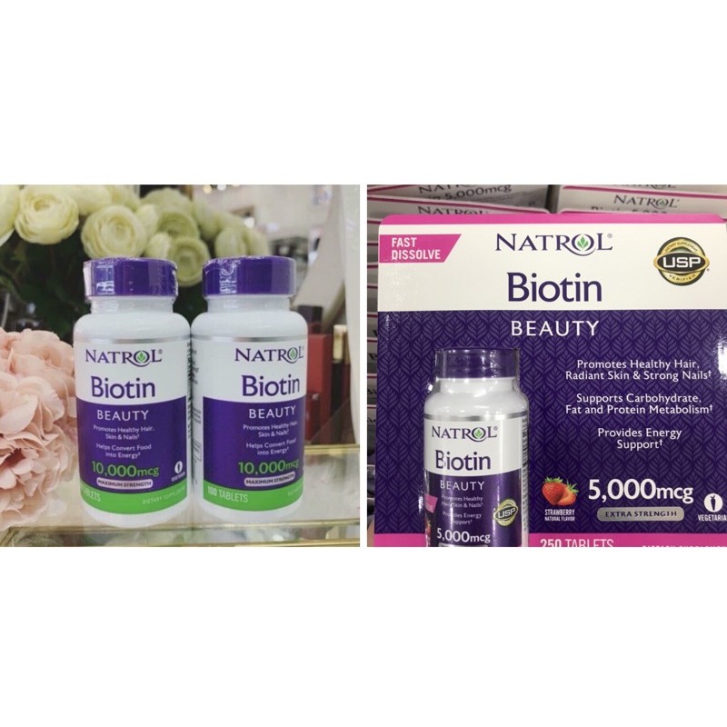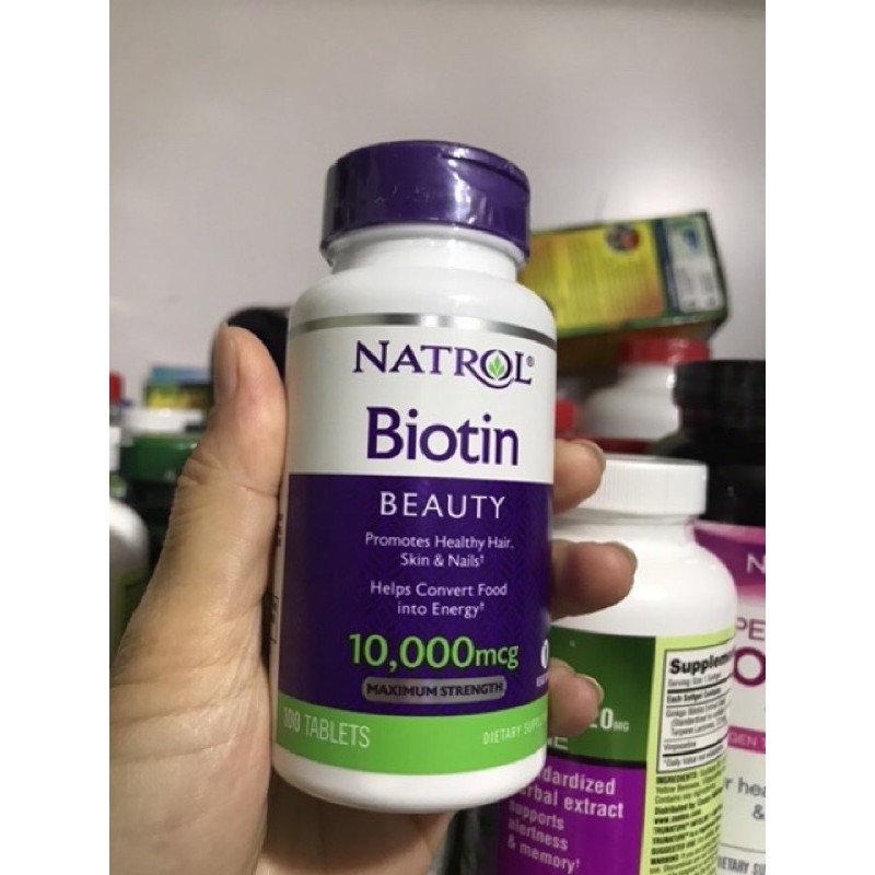 VIÊN UỐNG DA, TÓC MÓNG BIOTIN 1000MCG (ÚC) ☘️ ☘️ ☘️Biotin hay còn gọi là vitamin H hay vitamin b7 là một loại vitamin cần thiết đồng thời là chất dinh dưỡng quan trọng trong quá trình phát triển và nuôi dưỡng giúp cho làn da, móng tay và mái tóc được khỏe mạnh. Thế nên bằng cách nào để cung cấp đầy đủ Biotin cho cơ thể? Viên uống chống rụng tóc Biotin 10000mcg hộp 100 viên của Mỹ sẽ là lựa chọn thông minh của bạn ☘️ ☘️ ☘️CÔNG DỤNG: - Biotin giúp cải thiện tình trạng rụng tóc, gãy tóc, xơ rối tóc - Hỗ trợ tế bào của tóc và móng tay phát triển - Hỗ trợ mọc tóc và tăng độ dày của tóc, giúp tóc luôn dày và óng mượt - Giảm tình trạng bong da tay – chân. - Cung cấp Biotin để giúp nuôi dưỡng và làm chắc khỏe tóc và móng tay. - Giảm vết sạm, vết nhăn và làm chậm quá trình lão hóa của cơ thể. - Giúp cho da mịn màng và sáng bóng. - Hỗ trợ sản xuất tế bào cho cơ thể - 100% chiết xuất từ thực vật ☘️ ☘️ ☘️CÁCH DÙNG: uống 1 viên mỗi ngày, uống sau bữa ăn Và nhớ uống nhiều nước. 👉Hộp 100 viên uống 3 tháng