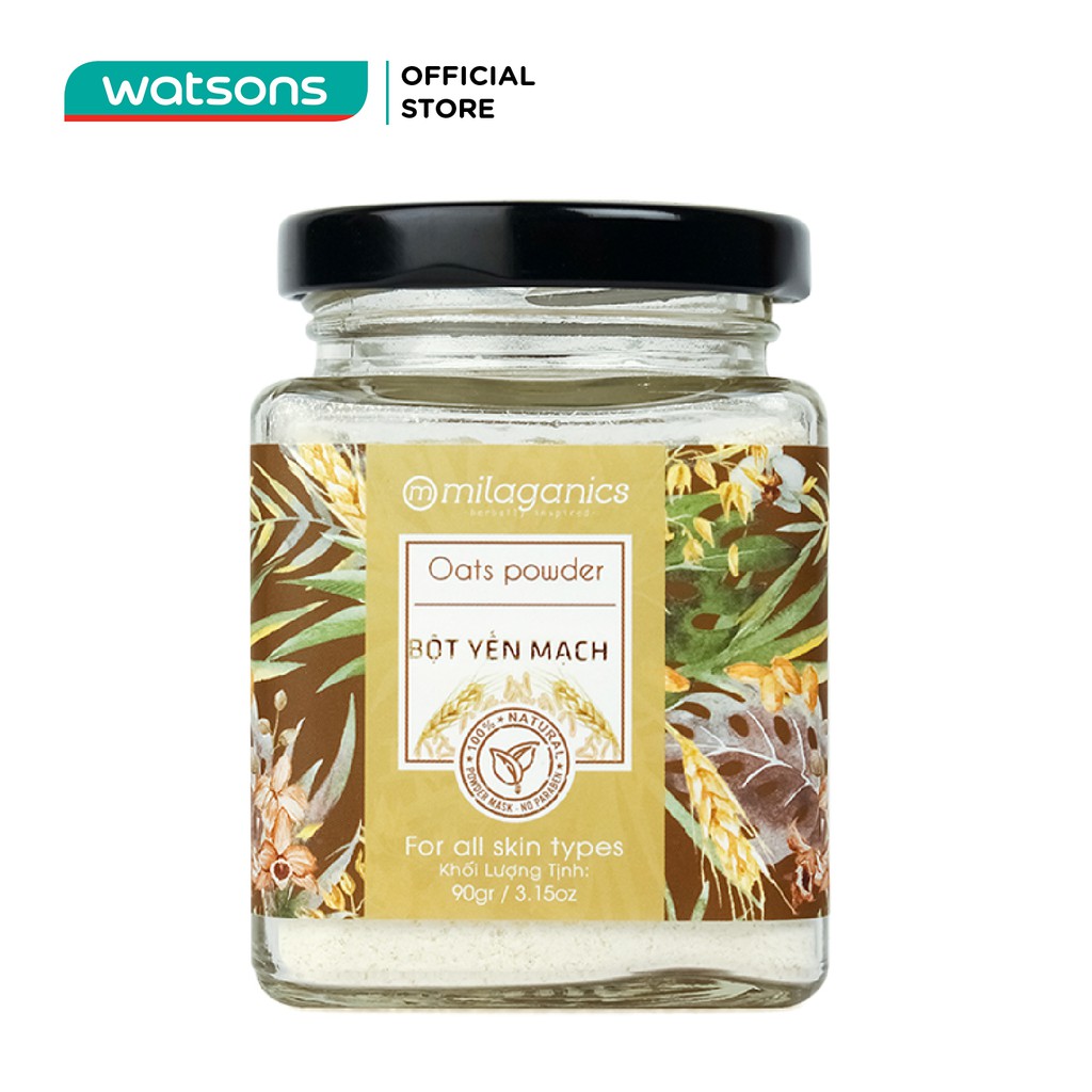 "Bột Yến Mạch Milaganics 90g Bột Yến Mạch Milaganics với thành phần giàu vitamin B, vitamin E, cùng các dưỡng chất, khoáng chất, acid béo và omega-3 sẽ mang đến cho bạn làn da mềm mịn và khỏe mạnh, cải thiện tình trạng dị ứng và mẫn cảm, đồng thời đẩy lùi lão hóa da và các nguyên nhân gây mụn trứng cá trên da. Thành Phần Chính và Công Dụng: - Cải thiện tình trạng dị ứng và mẫn cảm, giảm mụn trứng cá. - Với thành phần gồm vitamin nhóm B và vitamin E, bột yến mạch được xem là một trong những loại nguyên liệu lành tính, phù hợp với mọi loại da, bột yến mạch có khả năng tái tạo và cân bằng ẩm rất tốt. Ngoài ra, bột yến mạch Milaganics có tác dụng loại bỏ và hấp thụ chất nhờn, những vi khuẩn từ da cũng như các tác nhân gây nên mụn trứng cá. - Chống lão hóa da, giúp da săn chắc, khỏe khoắn. - Theo nghiên cứu da liễu từ New York, đắp mặt nạ bột yến mạch thiên nhiên giúp nhẹ nhàng tẩy đi lớp tế bào sừng trên da. Nhờ có dưỡng chất saponin, rất nhiều khoáng chất, acid béo omega-3 và vô số các thành phần khác, bột yến mạch giúp chống lão hóa và làm mịn da rất hiệu quả. Hướng Dẫn Sử Dụng: Rửa mặt sạch, sử dụng một lượng bột vừa đủ (10gr) hòa với mật ong, sữa tươi hoặc sữa chua không đường tạo thành hỗn hợp sệt. Thoa đều hỗn hợp lên mặt, giữ khoảng 20 phút, sau đó rửa sạch lại với nước. Nếu da mụn viêm, sưng đỏ hãy thêm một ít muối biển sẽ rất hiệu quả. Còn đối với da dầu, hãy thêm một ít chanh vào mặt nạ. Đắp khoảng 20-30 phút, mỗi tuần từ 2-3 lần bạn sẽ thấy những chỗ mụn nhanh chóng xẹp xuống, vùng viêm sưng được tái tạo và trở lại bình thường. Không những là mỹ phẩm thiên nhiên dưỡng ẩm tốt, yến mạch còn giúp da trắng sáng hơn: Hạn sử dụng: 12 tháng kể từ NSX Trộn đều yến mạch Milaganics với nước ấm, cho vào hỗn hợp lòng trắng trứng, sữa chua, mật ong và đánh đều đến khi nổi bọt. Rửa mặt thật sạch rồi thoa lên mặt và cổ trong vòng 20-30 phút, bạn chỉ cần đắp từ 2-3 lần/tuần đảm bảo chỉ sau 1 tháng vết thâm hoàn toàn mờ đi và làn da bạn sáng hơn trông thấy."
