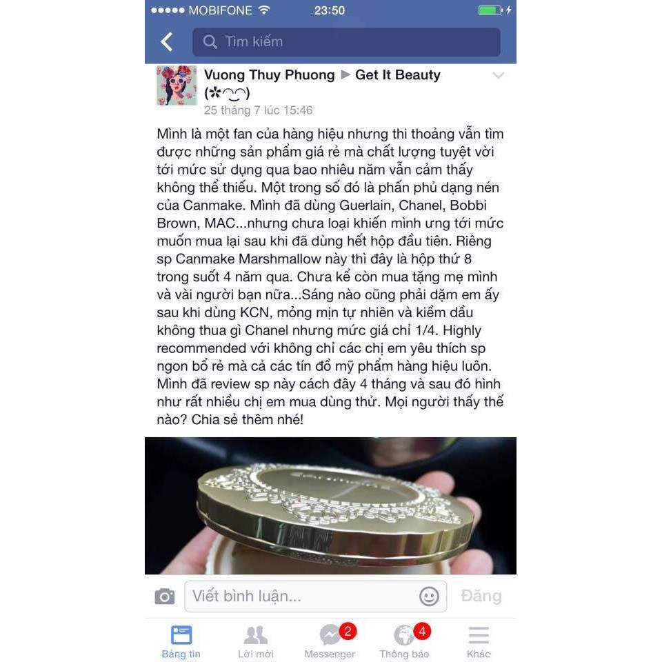 Sản phẩm Phấn Phủ Canmake Marshmallow Finish Powder nhận được 3 lượt đánh giá tích cực từ những người mua khác. Bấm vào nút Xem Đánh Giá để chuyển sang phần đánh giá của người dùng đã mua hàng.