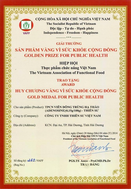 Giới thiệu viên đông trùng hạ thảo đông trùng hạ thảo thiên sư hỗ trợ cải thiện sức khỏe, tăng sức bền, phục hồi năng lượng, giúp bổ sung dinh dưỡng. Và đặc biết là đông trùng hạ thảo còn là sản phẩm hỗ trợ chống bệnh tật và điều trị bệnh hiệu quả . Ngày nay do khí hậu, ô nhiễm môi trường sức khỏe chúng ta bị ảnh hưởng rất lớn từ yếu tố. Đông trùng hạ thảo là liệu pháp hữu hiệu cho sức khỏe gia đình bạn. Đông trùng hạ thảo chính là một loại sinh vậy duy nhất trên thế giới vừa là động vật vừa là thực vật đây chính là hợp thể giữa côn trùng và nấm. Vào thời tiết mùa đông là côn trùng, mùa hạ lại là cây cỏ, đó là đặc tính của bào tử nấm. sinh trưởng ở vùng núi cao nguyên giá lạnh, có độ cao 3500- 5000 mét so với mực nước biển thuộc Tây Tạng, Trung Quốc chính vì thế mà mà đông trung hạ thảo vô cùng quý giá. vien-dong-trung-ha-thao-thien-su Viên đông trùng hạ thảo thiên sư Tác dụng của sản phẩm Viên đông trùng hạ thảo Thiên Sư Thực phẩm chức năng viên đông trùng hạ thảo Thiên Sư dạng viên chính là một sản phẩm rất tốt trong việc tăng cường miễn dịch, chống mệt mỏi, hỗ trợ tim mạch. Sản phẩm đông trùng hạ thảo này đã được rất nhiều người tin tưởng và sử dụng với kết quả cao. - Sản phẩm giúp tăng cường hệ miễn dịch, chống lại các tác nhân gây hại từ bên ngoài vào cơ thể, - Sản phẩm còn giúp điều trị rât tốt với những trường hợp bị suy phổi như ho nhiều, khản cổ, thở khò khè gấp gáp, thần kinh suy yếu, bệnh lao phổi, hen xuyễn, tăng cường dịch tiết trong khí quản và trừ đờm. - Đông trùng hạ thảo thiên sư, giúp chống lại tác dụng xấu của các loại tân dược đối với thận và làm tăng cường tác dụng của nội tiết tố tuyến thượng thận, bảo vệ thận trong trường hợp tổn thương do thiếu máu nghiêm trọng. - Làm giảm huyết áp, chống bệnh huyết áp cao và chống lại bệnh thiếu máu ở cơ tim giúp tăng cường lưu thông máu và tốt đối với hệ tuần hoàn - Làm chậm quá trình lão hóa của cơ thể, Giúp hạn chế những bệnh của tuổi già có thể gặp phải. - Sản phẩm còn rất tốt với hệ thần kinh trung ương. - Làm giảm Cholesterol trong máu và chống xơ vữa động mạch, - Tăng cường chức năng tiêu hóa và hấp thụ các chất dinh dưỡng, - Ức chế vi sinh vật có hại, kể cả vi khuẩn lao, - Đông trùng hạ thảo giúp kháng viêm, tiêu viêm Thành phần của sản phẩm: Bột trùng thảo lên men 100%, 0,5g x 100 viên/lọ Hướng dẫn sử dụng sản phẩm đông trùng hạ thảo thiên sư : - Mỗi ngày dùng 01 đến 02 lần, mỗi lần 02 viên. Không nên dùng với nước sôi. Đối với người đang bị bệnh cần uống liều cao từ 8-12 viên /ngày chia 3 lần. Những ai nên sử dụng sản phẩm trùng thảo này : - Những người có khả năng miễn dịch kém, - Những người thường rất dễ mệt mỏi làm việc nhiều, quá sức, - ĐỐi với những người đang sử dụng thuốc tây để chữa bệnh. Lưu ý : (Không sử dụng sản phẩm cho trẻ em). Sản phẩm không phải là thuốc không có tác dụng thay thế thuốc chửa bệnh. Hạn sử dụng . 18 tháng kết từ ngày sản xuất Tác dụng phụ: Sản phẩm an toàn cho người sử dụng. #dongtrunghathao ,#dongtrunghathaothiensu