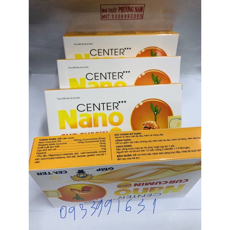 CENTER Nano curcumin gold-Hộp 30 viên.Xem hướng dẫn sử dụng trên hình ảnh sản phẩm shop Phương Nam thiên nhiên việt chụp.Hạn sử dụng : 3 năm kể từ ngày sản xuất in trên bao bì(date luôn mới)