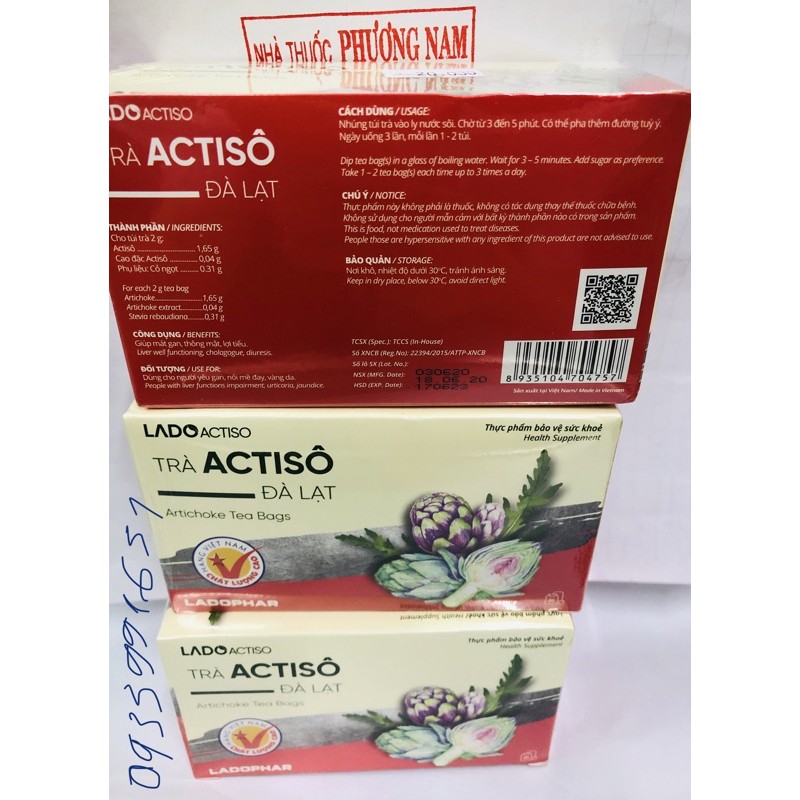 Trà ATISO-Hộp 20 gói.Xem hướng dẫn sử dụng trên hình ảnh sản phẩm shop Phương Nam chụp.Hạn sử dụng : 2 năm kể từ ngày sản xuất in trên bao bì(date luôn mới)