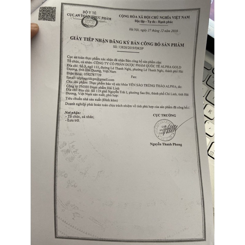 Sản phẩm Yến Sào Trùng Thảo Alpha hiện đang được bán tại Shopee.