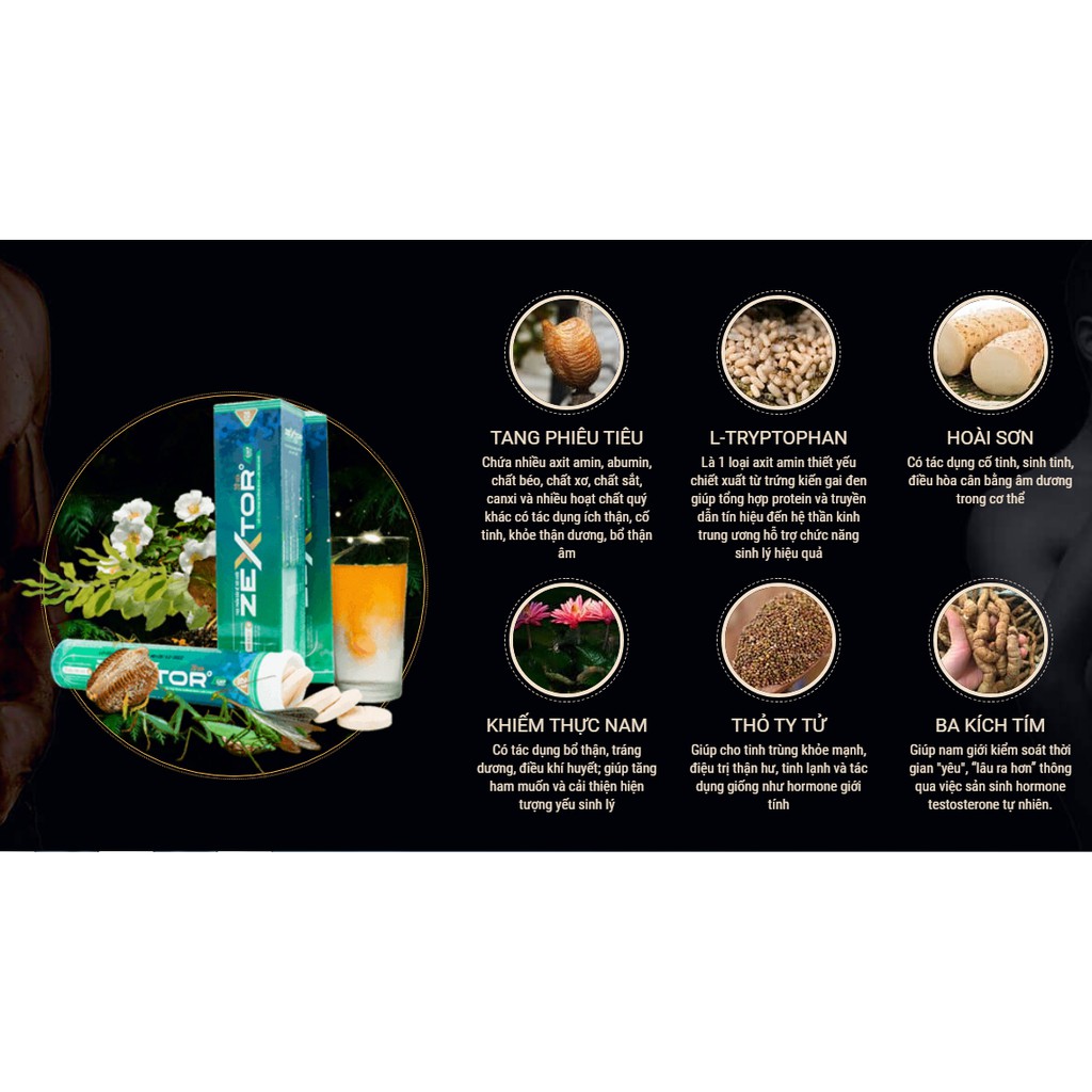 MÔ TẢ SẢN PHẨM Zextor là sản phẩm bảo vệ sức khỏe cho phái mạnh được bào chế dưới dạng viên sủi giúp tăng cường sinh lý, kéo dài thời gian quan hệ, kích thích ham muốn tình dục, chống xuất tinh sớm. Sản phẩm do công ty Cổ phần Dược phẩm Fresh Life ở cụm CN An Xá, xã Mỹ Xá, TP Nam Định, tỉnh Nam Định và đã được Bộ Y tế kiểm định chất lượng và chứng nhận là sản phẩm an toàn cho sức khỏe theo giấy phép số 02373/2019/ATTP. THÀNH PHẦN Viên uống tăng cường sinh lý nam Zextor là sự kết hợp độc đáo giữa Y học Cổ truyền và công nghệ hiện đại vừa có tác dụng bền lâu mà không gây tác dụng phụ. Với chiết xuất hoàn toàn từ thiên nhiên được sàng lọc kỹ lưỡng dưới sự giám sát của các nhà khoa học hàng đầu thế giới, viên uống Zextor đã, đang và sẽ là sản phẩm hỗ trợ tăng cường sinh lý hàng đầu tại Việt Nam. Các thành phần thảo dược thiên nhiên quý hiếm có trong sản phẩm như : Tang Phiêu Phiêu L-TRYPTOPHAN Khiếm thực nam Hoài sơn Thỏ ty tử Ba kích tím CÔNG DỤNG - Hỗ trợ sản sinh nồng độ hormone sinh dục nam testosterone một cách tự nhiên, giúp cân bằng hormone trong cơ thể. - Hỗ trợ gia tăng kích cỡ dương vật - Hỗ trợ điều trị chứng rối loạn cương dương, yếu sinh lý, xuất tinh sớm, - Giúp nam giới có thể kiểm soát khả năng cương cứng và thời gian xuất tinh của mình khi “yêu”. - Giúp bổ thận, tráng dương, tăng cường khả năng sinh lý của nam giới - Cải thiện số lượng tinh trùng - Làm giảm hiện tượng mãn dục sớm ở nam, đồng thời làm tăng ham muốn tình dục. - Cải thiện sức khỏe và sức đề kháng cho cơ thể. ĐỐI TƯỢNG DÙNG Viên sủi Zextor rất thích hợp cho những nam giới sau: - Bị thiếu hormone testosterone muốn tăng cường testosterone tự nhiên. - Bị rối loạn cương dương, yếu sinh lý, rối loạn xuất tinh (xuất tinh sớm, di tinh, mộng tinh...). - Suy giảm ham muốn tình dục và có hiệu suất tình dục kém. - Muốn tăng kích thước cậu nhỏ, muốn kéo dài thời gian khi quan hệ. - Có nhu cầu tăng cường sức khỏe toàn diện, tăng cường chức năng sinh lý. CÁCH SỬ DỤNG - Cho 1 viên sủi vào 1 cốc nước lọc khoảng 150 – 200ml nước. Sau khi viên sủi tan hết trong nước thì dùng trực tiếp - Uống vào thời điểm trước bữa ăn khoảng 30 phút hoặc sau bữa ăn 1 giờ đồng hồ. - Về liều dùng: uống 1 viên/lần và ngày uống 2 lần vào buổi sáng và tối. Sản phẩm là thực phẩm chức năng và không có tác dụng thay thế thuốc chữa bệnh Bảo quản thuốc ở nơi khô ráo thoáng mát và tránh xa tầm tay trẻ em #viensuisinhly #thuochotrosinhly #viensuihotrosinhly #viensuisinhlyzextor #viensuizextor #vienuongsinhlyzextor #viensinhlyzextorcototkhong #cachdungvienuongsinhlyzextor
