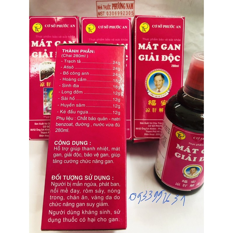 Mát gan giải độc-Chai 280ml.Xem hướng dẫn sử dụng trên hình ảnh sản phẩm shop Phương Nam thiên nhiên việt chụp...