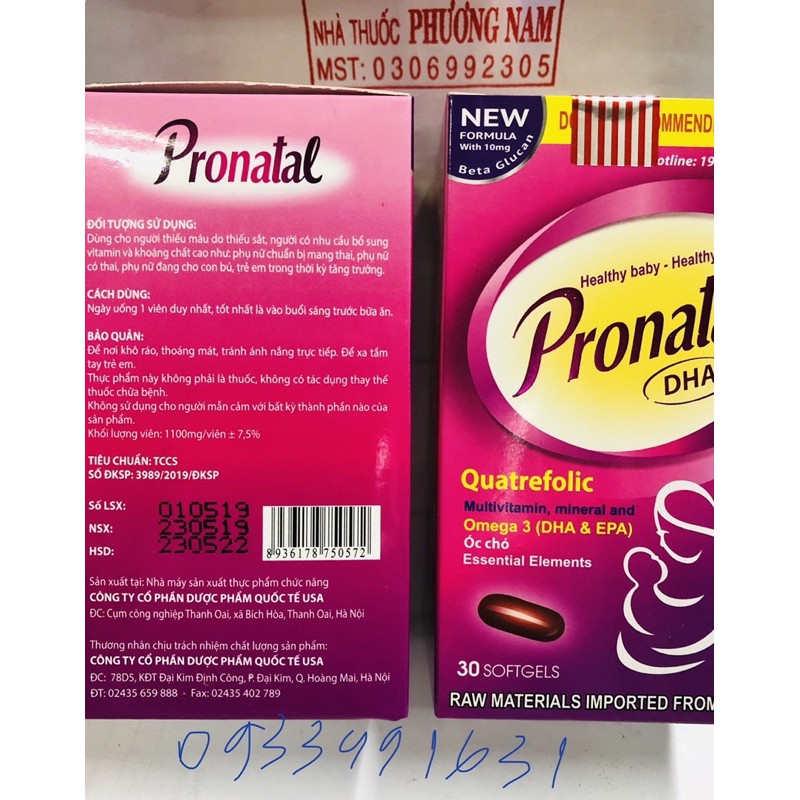 Pronatal-Hộp 30 viên.Xem hướng dẫn sử dụng trên hình ảnh sản phẩm shop Phương Nam thiên nhiên việt chụp.Hạn sử dụng : 3 năm kể từ ngày sản xuất in trên bao bì(date luôn mới)