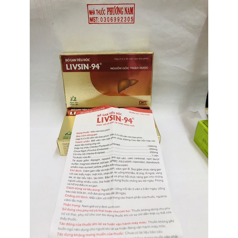 LIVSIN-94(Hộp 40 viên).Xem hướng dẫn sủ dụng hình ảnh sản phẩm shop Phương Nam thiên nhiên việt chụp.................,
