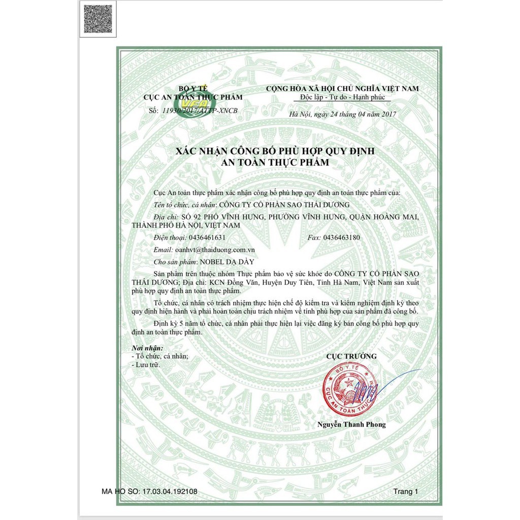 Thành phần: Curcumin (Chiết xuất nghệ vàng), Cao đậu tương lên men, phụ liệu: Vừa đủ 1 viên nang cứng Công Dụng: Giúp giảm đau, giảm viêm loét dạ dày, tá tràng, ợ hơi, ợ chua, giảm trào ngược dạ dày - thực quản. Đối Tượng: Dùng cho các đối tượng: Người bị viêm loét dạ dày, tá tràng, ợ hơi, ợ chua, người trào ngược dạ dày - thực quản Hướng dẫn sử dụng: Ngày uống 3 lần, mỗi lần uống 1 viên, uống ngay sau bữa ăn. Bảo Quản: Nơi khô mát, nhiệt độ dưới 30oC, tránh ánh sáng trực tiếp Trình Bày: Hộp 3 vỉ x vỉ 15 viên Hạn Dùng: 36 tháng kể từ ngày sản xuất Số XNCB: 11930/2017/ATTP-XNCB SẢN PHẨM NÀY KHÔNG PHẢI LÀ THUỐC VÀ KHÔNG CÓ TÁC DỤNG THAY THẾ THUỐC CHỮA BỆNH.