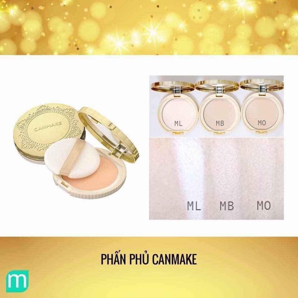 ☘Phấn phủ Canmake MarshMallow Finish Powder SPF26.PA++ 🎀Khối lượng: 10g ✔ Có 4 màu: + ML - Matte Light Ochre: dành cho da trắng sáng + MO - Matte Ochre: màu trắng tự nhiên + MP - Matte Pink Ochre: màu trắng hồng, giúp da hồng hào (thích hợp với da xanh xao, vàng vọt) + MB - Matte Beige Ochre: màu be, hợp với da không được trắng, da ngăm ✔ Loại lõi refill: chỉ gồm lõi phấn và 1 bông phấn, không kèm hộp, các bạn đã có hộp có thể nạy lõi cũ ra rồi lắp lõi mới vào sử dụng tiếp rất dễ dàng và tiết kiệm. ----------------- Mang lại nét thanh tú cho gương mặt với vẻ đẹp ngọt mềm ♡ như viên kẹo dẻo Marshmallow. Loại phấn tinh tế kết hợp từ tính chất mượt mà của lụa và mềm dịu như kẹo Marshmallow ♡ Không dùng phụ gia khoáng chất để tốt cho làn davà dễ dàng làm sạch bằng cách rửa mặt bình thường. ● Tốt cho làn da bạn với 72% thành phần là khoáng chất. ● Không cần chất tẩy rửa đặc biệt, tẩy trang theo cách rửa mặt bình thường. Không hoạt chất bề mặt, không chất nhuộm màu gốc hắc ín, không cồn, không chất tạo hương. Chế tạo với công thức ngăn ngừa lớp trang điểm bị trôi do bóng nhờn, xỉn màu, khô sạm. ● Chứa phấn hạn chế bóng nhờn. Loại phấn này hấp thụ bã nhờn ngăn tình trạng bóng nhờn, dính nhớp và phai màu lớp trang điểm. Chứa 10 thành phần mĩ phẩm bảo vệ da không bị khô nhám. Thành phần dưỡng ẩm. ●Chiết xuất từ lá lô hội, hương thảo, cúc Chamomile, nước chanh. Thành phần dưỡng da. ●Chiết xuất từ hạt dẻ ngựa, lá tía tô. Thành phần làm mềm da. ●Dẫn xuất Squalance, dầu Ô liu, dầu Jojoba, dầu hạt nho. Chứa phấn che phủ để phủ kín lỗ chân lông và vùng da không đều màu. Kết hợp hai loại hạt phấn mịn hình cầu có kích cỡ khác nhau để tạo hiệu ứng khuếch tán ánh sáng giúp khó thấy các khiếm khuyết như lỗ chân lông hay vùng da không đều màu. Cách dùng Thực hiện theo cách trang điểm thông thường: Săn sóc da → Đánh phấn lót → Đánh phấn nền (nên dùng phấn dạng nước hay kem) → Đánh phấn phủ Marshmallow. ・Lấy một ít phấn lên bông phấn, vỗ nhẹ bông phấn lên mu bàn tay để rũ bớt phấn thừa trước khi thoa phấn.