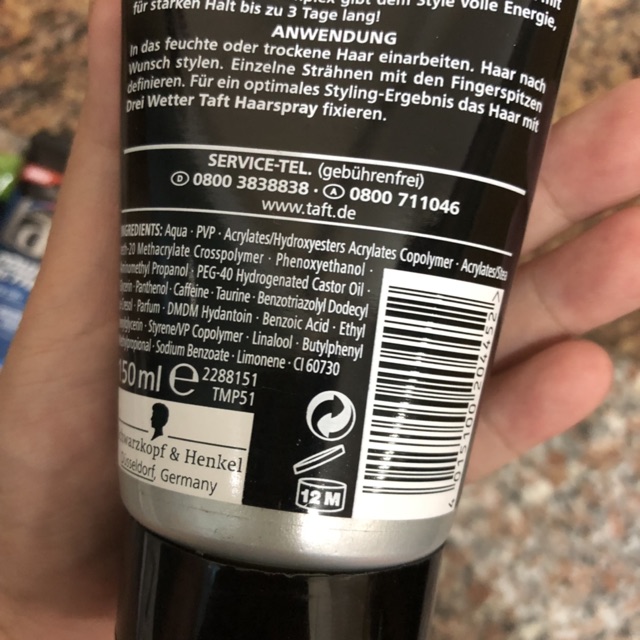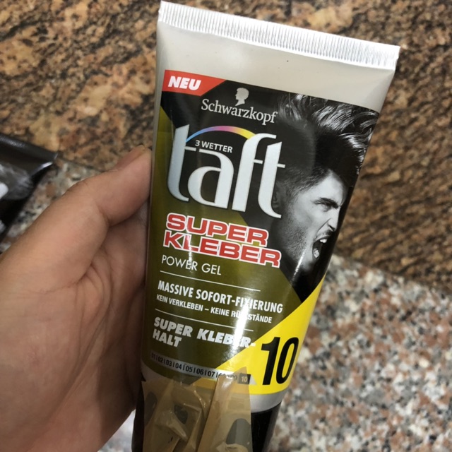 GEL VUỐT TÓC CHO CÁC CHÀNG - TAFT POWER STYLING GEL LOẠI mega Stark 150ml - HÀNG ĐỨC - GIÁ : 185K tuýp 150ml - Công thức độc đáo với caffeine, chăm sóc tóc tóc từ gốc tới ngọn & cho kiểu tóc đầy năng lượng! - Tóc không bị khô và cũng không bị nặng đầu. - Thích hợp với mọi thời tiết. - DÙNG KHI TÓC ƯỚT HAY TÓC KHÔ ĐỀU ĐƯỢC CÁC SIS NHÉ, THEO 3 BƯỚC SAU Ạ: + Bước 1: Vuốt theo từng món tóc từ chân đến ngọn tóc để tạo kiểu theo ý thích. + Bước 2: Dùng đầu ngón tay xoắn từng phần tóc nhỏ hoặc kéo thẳng đứng để tạo kiểu tóc ấn tượng. + Bước 3: Chờ cho tóc khô là sẽ có kiểu đẹp như ý thích hoặc sấy bằng máy sấy
