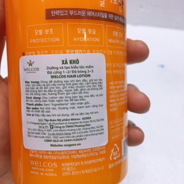 Là sản phẩm gel vuốt tóc sau khi xả khô (gội và sấy tóc xong), dùng để dưỡng sau khi làm đầu. Phù hợp với những kiểu tóc xoăn, tạo kiểu và giữ nếp lâu dành cho Nam và Nữ. Gel dưỡng tóc Confume Hair Lotion làm tăng hiệu quả bảo vệ và chăm sóc tóc, giữ độ ẩm cho tóc không bị khô xơ, . . .Đặc biệt, không làm da đầu bị gàu, ngứa, bết, dính, và không bắt bụi. Theo thông số mà nhà sản xuất đưa ra thì độ cứng 1 ~ 2 / Độ bóng 2 ~ 3, có thể nói độ làm bóng tóc của sản phẩm ở mức cao. Mang theo mùi hương thơm dịu nhẹ, dễ chịu đầy gợi cảm quyến rũ. Thông tin sản phẩm: Thương hiệu: Welcos Xuất xứ: Hàn Quốc Trọng lượng: 400ml Hạn sử dụng: 3 năm (xem trên vỏ hộp) Hướng dẫn sử dụng: Cho Gel vào lòng bàn tay xoa đều và bôi lên tóc, dùng lược hoặc ngón tay để tạo kiểu theo ý muốn. Bảo quản: Không để sản phẩm trong điều kiện dưới ánh nắng mặt trời, nơi có nhiệt độ ẩm bất thường, khu vực có hóa chất diệt côn trùng.