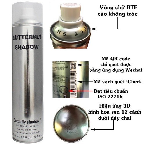 Sản phẩm Gôm Bạc Xịt Tạo Kiểu Tóc Butterfly Shadow 600Ml hiện đang được bán tại Shopee.