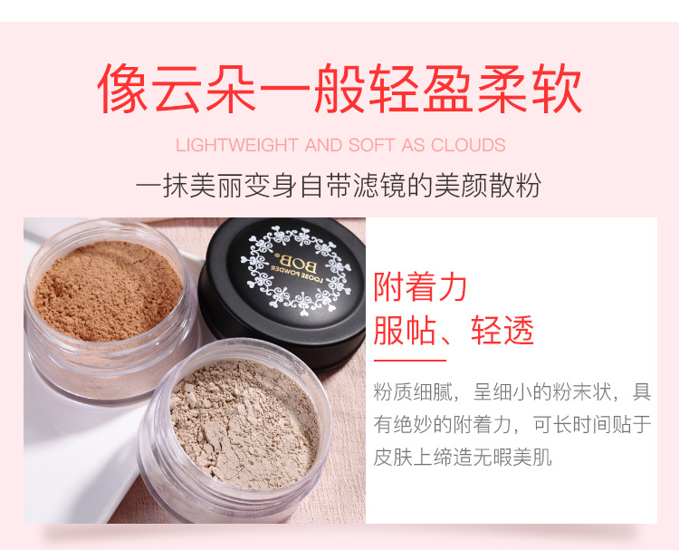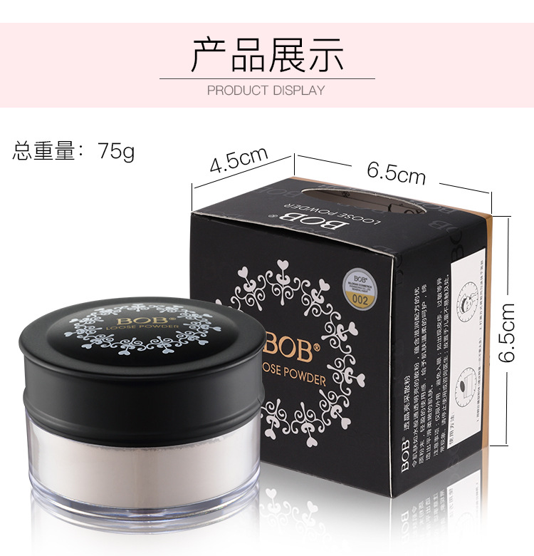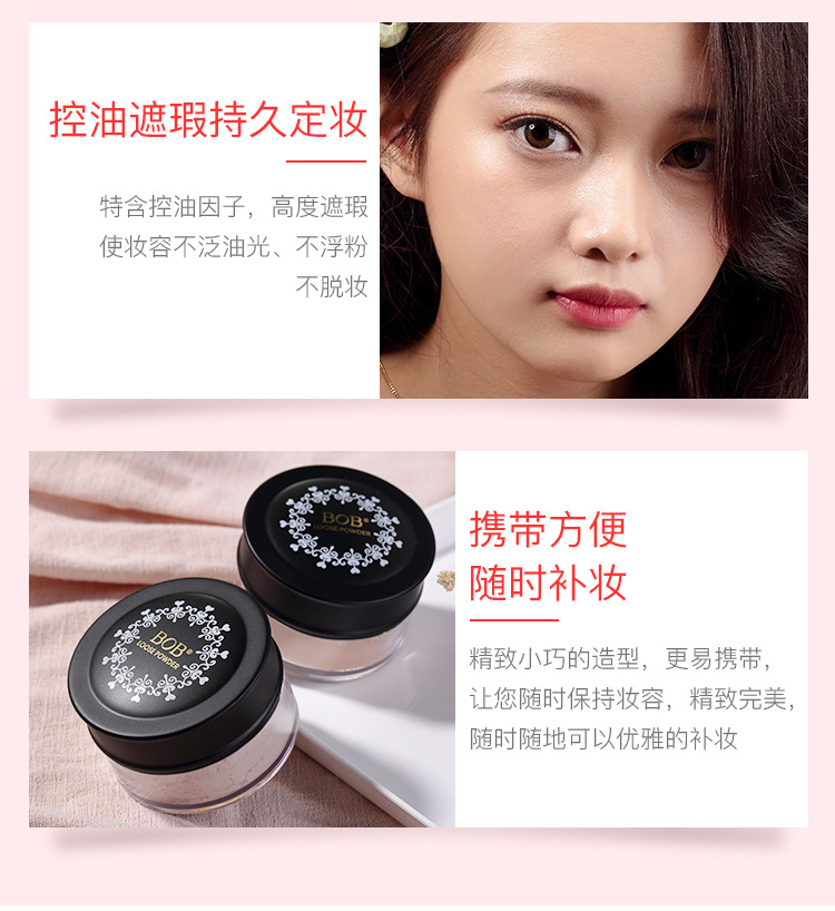 made in China Brand: BOB Efficacy: Concealer Product Category: Matte Color: single color Specifications: normal specifications Shelf life: 3 years Skin Type: General Color Classification: 2# Matte Powder Skin Color, 3# Matte Wheat Skin Color, 4# Matte Natural Color, 5# Skin Color (With Pearly), 06# Matte Deep Skin Color Category: Loose Powder 1. 100% all high-quality products 2.24 hours chat service 3. Ultra-fast logistics speed 4.any question, can ask me