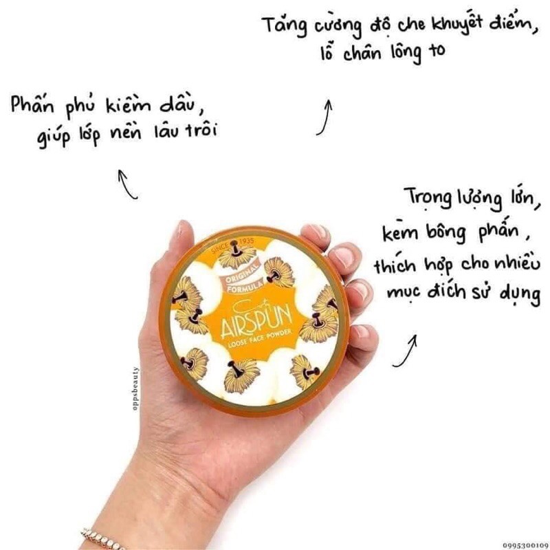 🔥🔥 PHẤN PHỦ QUỐC DÂN AIRSPUN COTY ⭐️⭐️ 👉💸VỀ TAY CHỈ CÒN #299k/hũ‼️ 👉 Có 2 tone: 🌸 Naturally neutral : tone sáng 🌸 Honey beige : tone trung bình ⭐️Được xem là dupe của Laura Mercier, Phấn Phủ Coty Airspun Loose Face Pơder là sản phẩm đến từ Mỹ, nằm trong top 4 best seller Amazon với hơn 11,8k vote ⭐️Phấn Phủ Coty Airspun Loose Face Powder kiềm dầu cực kỳ tốt, các hạt phấn siêu nhỏ li ti, rất mịn, rất mỏng và dễ quyện đều vào da. Phấn phủ Coty Aipspun Loose Face Powder đặc biệt siêu nhẹ và mềm nền khi sử dụng hoàn toàn không hề cho cảm giác nặng mặt hay bị bí da ⭐️Với những ai không muốn trang điểm quá cầu kì thì chỉ cần apply mỏng một lớp kem chống nắng, sau đó phủ phấn Coty Aipspun Loose Face Powder thì sẽ có ngay làn da mịn đẹp đều màu, tự nhiên mà lại giúp lớp kem chống nắng lâu trôi. Với những bạn gái có nhiều khuyết điểm trên da, thì dòng phấn phủ này sẽ giúp bạn khắc phục nhanh chóng kể cả nếp nhăn, vết chân chim